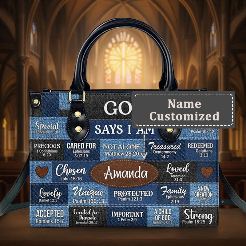 At the center, your name is beautifully highlighted, making the handbag a one-of-a-kind statement of faith and individuality. Just as Scripture calls each believer by name, this design reflects your personal walk with God, blending style with spiritual affirmation.