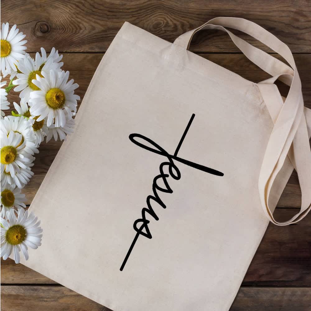 Just as the accompanying daisies symbolize purity and hope, our statement tote bags serve as daily reminders of divine love and strength. They are not only practical items but also heartfelt gifts for friends and family, spreading messages of encouragement and unwavering faith. Carry your essentials while also carrying the profound message of Jesus' significance in your life.