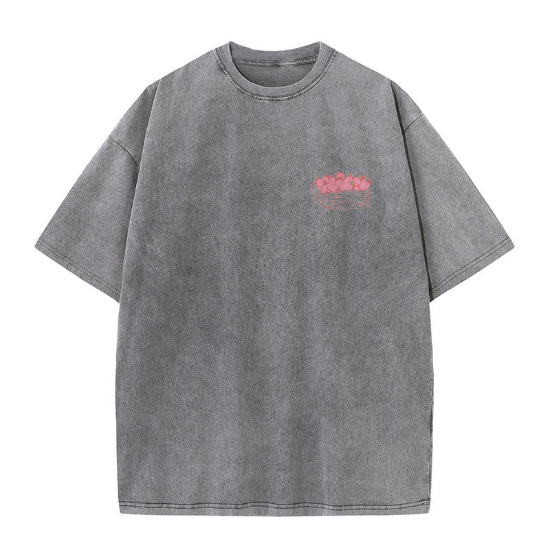 This black, vintage - washed T - shirt is a stylish blend of faith and fashion. The front features a small, subtle pink graphic of a crate filled with strawberries on the left side. The back is where it truly shines. In eye - catching pink lettering, it proclaims “the fruit of THE SPIRIT”. Below, a crate brimming with strawberries is depicted, symbolizing the spiritual fruits listed beneath: Love, Joy, Peace, Patience, Kindness, Goodness, Faithfulness, Gentleness, and Self - Control.