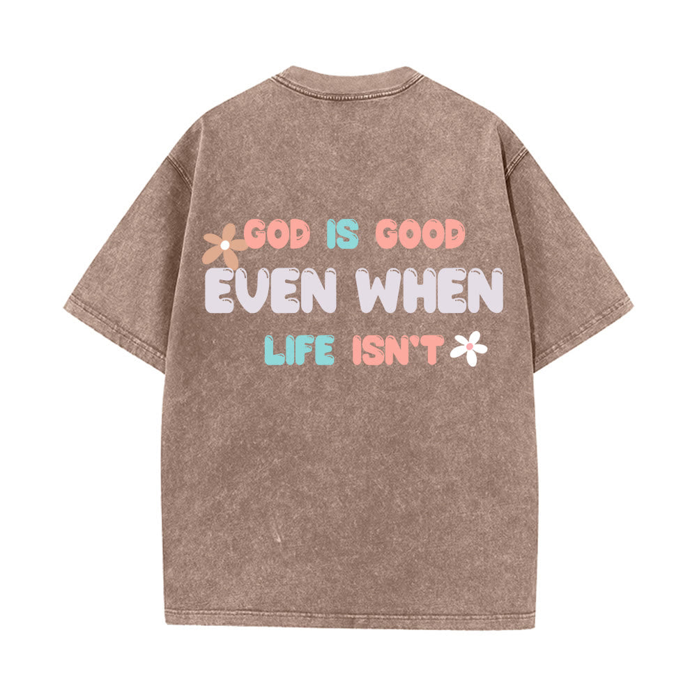 Introducing the "God Is Good Even When Life Isn't" Unisex Washed T-Shirt, a comforting and reassuring piece that speaks volumes about your faith. The design features playful pastel lettering paired with delicate floral accents, front and back both echoing the truth that God’s goodness remains unshakable, even in life’s hardest seasons — a gentle reminder rooted in biblical hope that His love and faithfulness never fail.