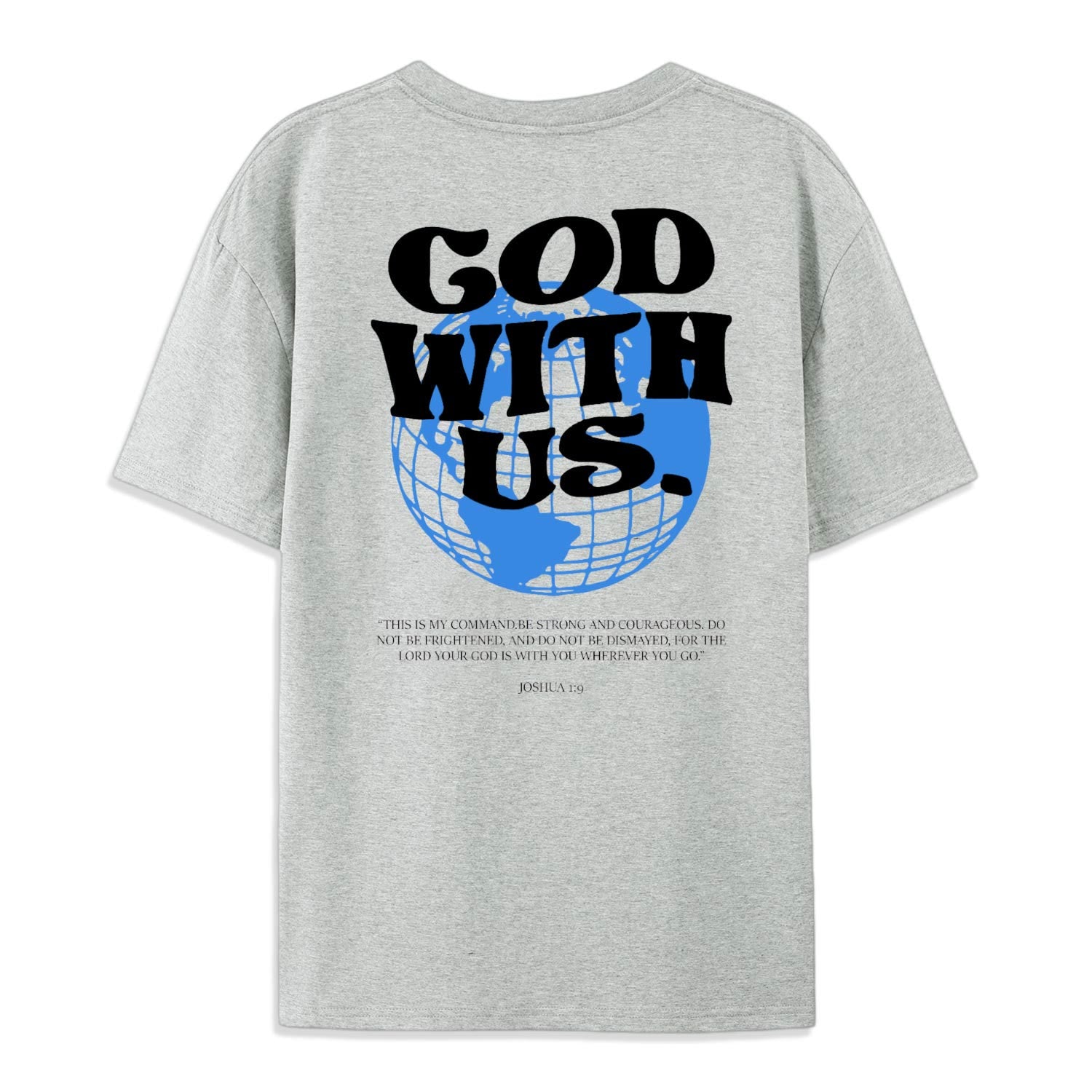 Embrace the strength and courage that comes from divine presence with the 'God With Us' T-shirt. Inspired by the powerful scripture from Joshua 1:9, this tee serves as a constant reminder that you are never alone—no matter where you go, God is with you.