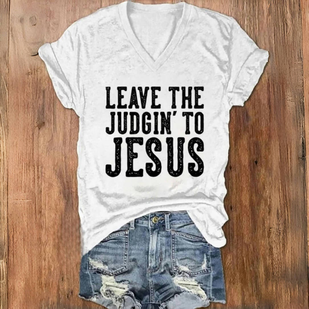 Christianartworkshop Leave The Judgin To Jesus Print V-Neck T-shirt