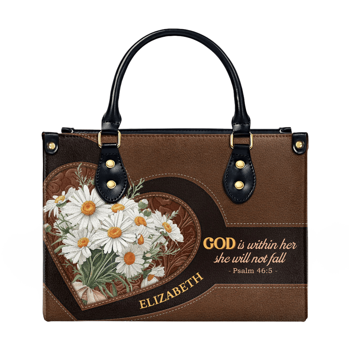 Psalm 46:5 Inspired Personalized Leather Handbag with Daisies & Heart Design