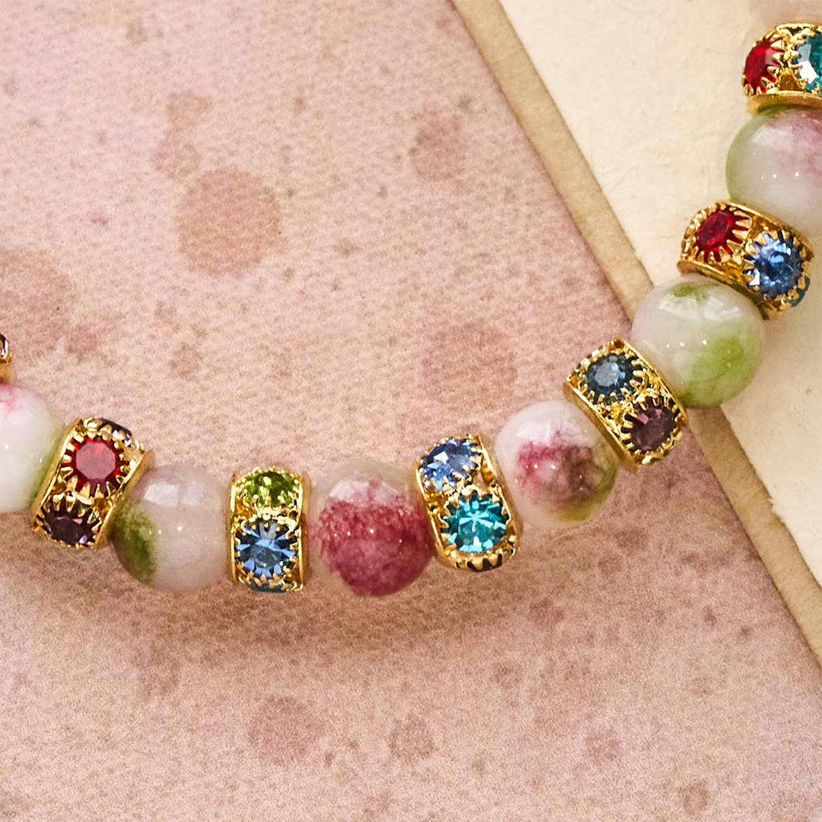 This Devotional Tourmaline Sparkling Bracelet wraps faith in radiant charm. The pink-green tourmaline beads (echoing the beauty of God’s creation) glint with colorful accents, while the ornate golden crucifix anchors every moment—tying each shimmer to Christ’s unending love. -