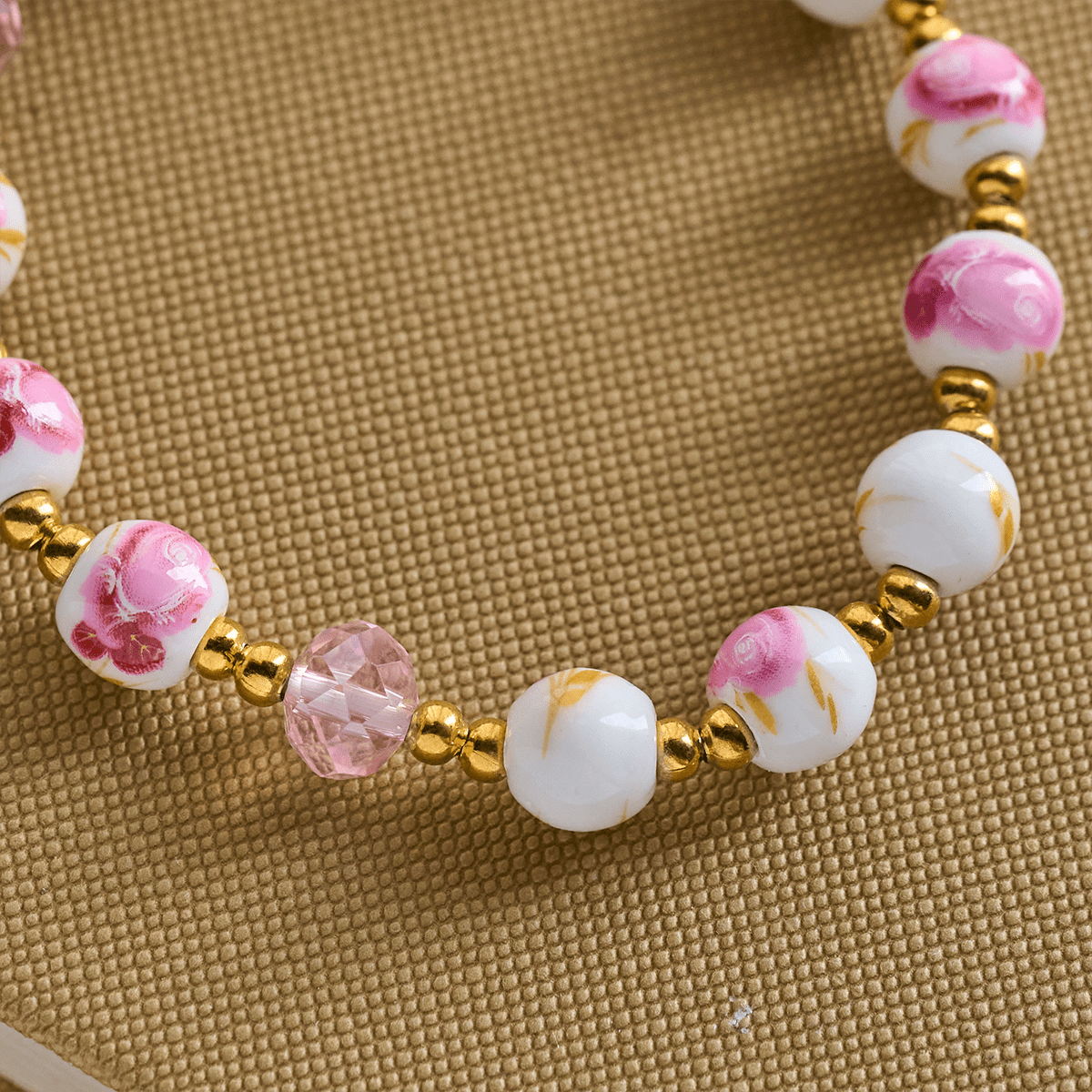 Bring serenity and spiritual focus into your daily life with this elegant pink ceramic bracelet, featuring 8mm beads adorned with delicate flower patterns. Its soft, harmonious tones inspire calm and reflection, offering a subtle yet beautiful reminder of God’s presence. -