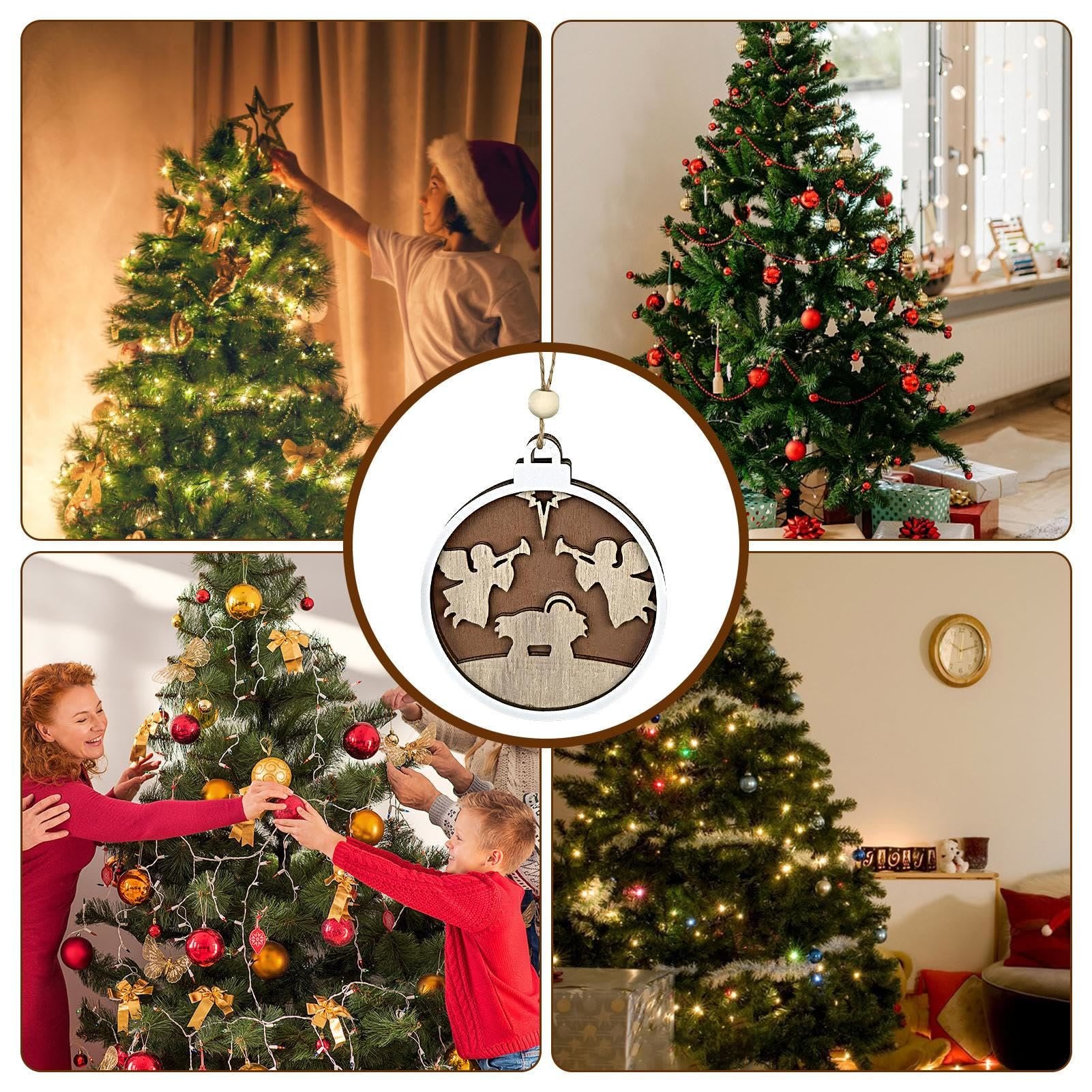 Minimalist Style Layered Wooden Angelic Figures Nativity Scene Pendant Christmas Nativity Hanging Ornaments