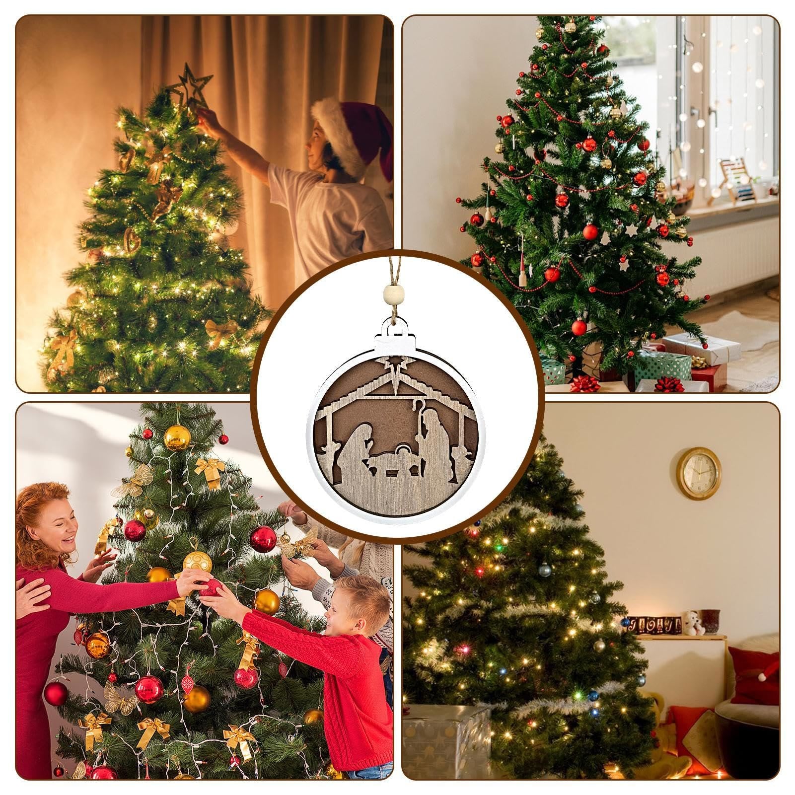 Minimalist Style Layered Wooden Jesus Nativity Scene Pendant Christmas Nativity Hanging Ornaments