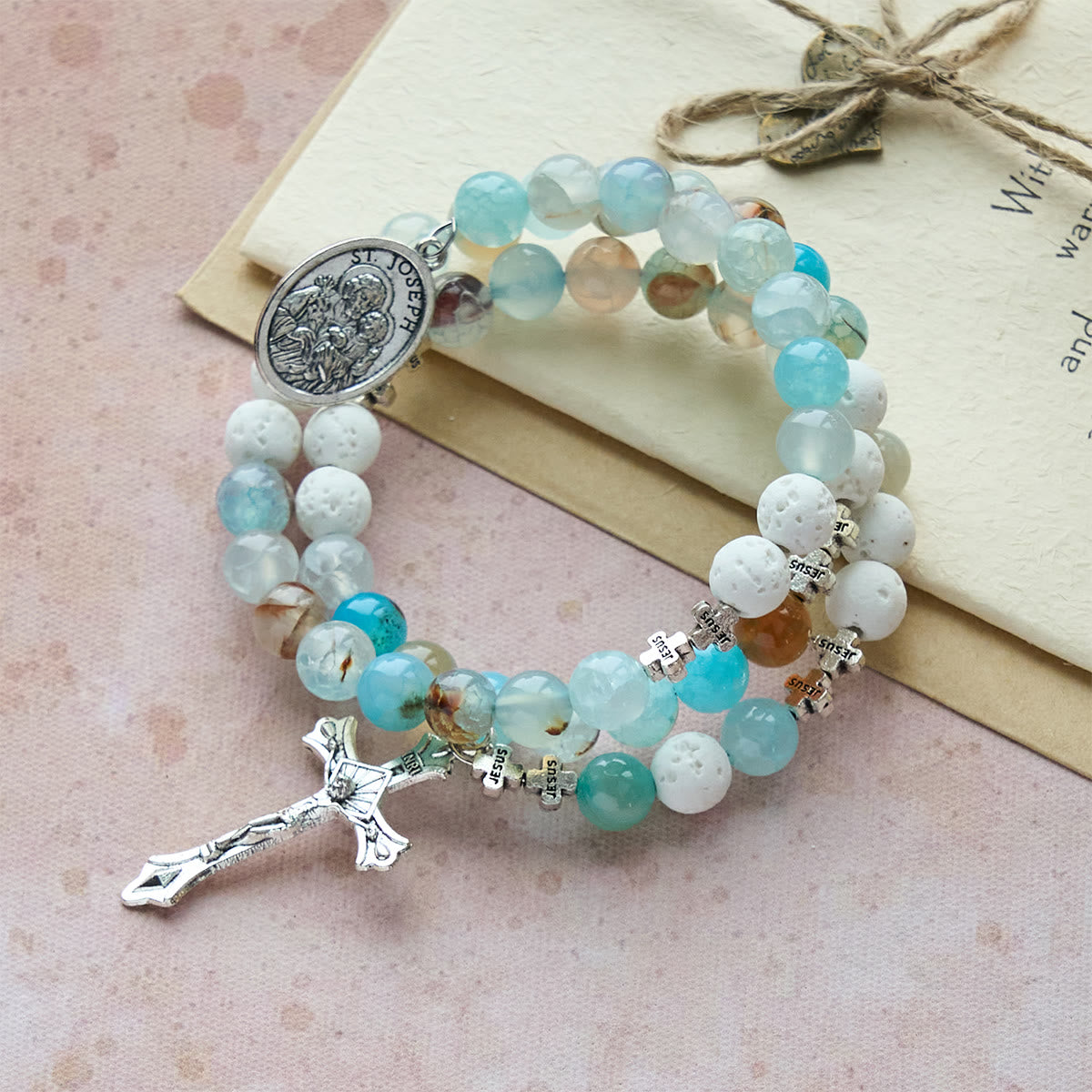 Christianartworkshop Gypsum & Blue Vein Agate Rosary Bracelet: Devotion & Heavenly Serenity