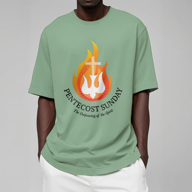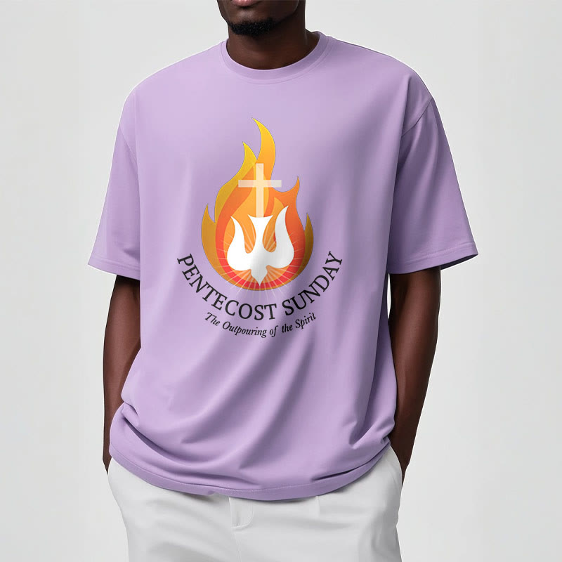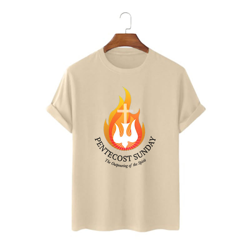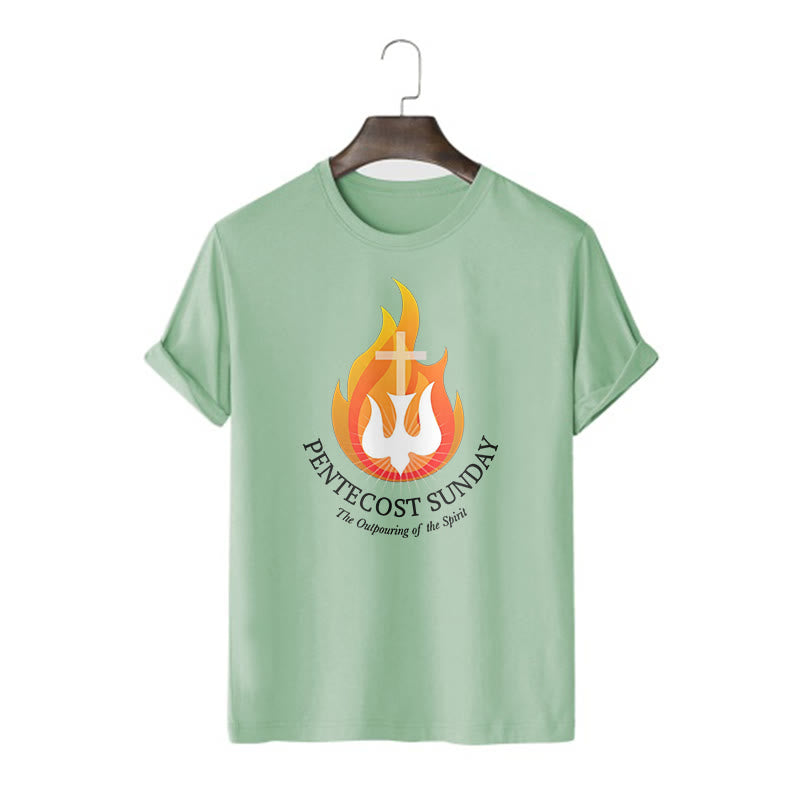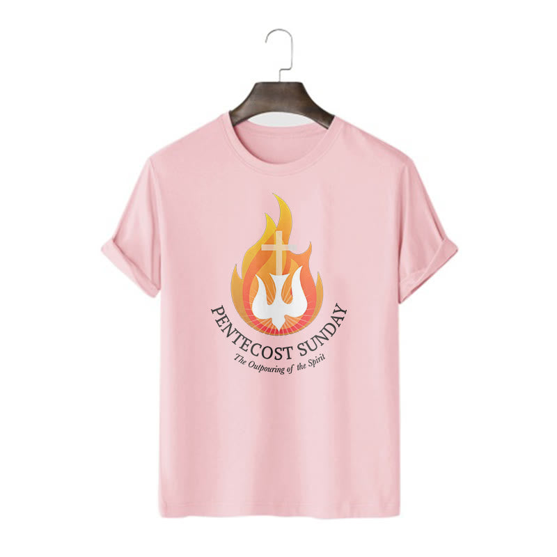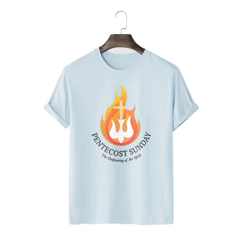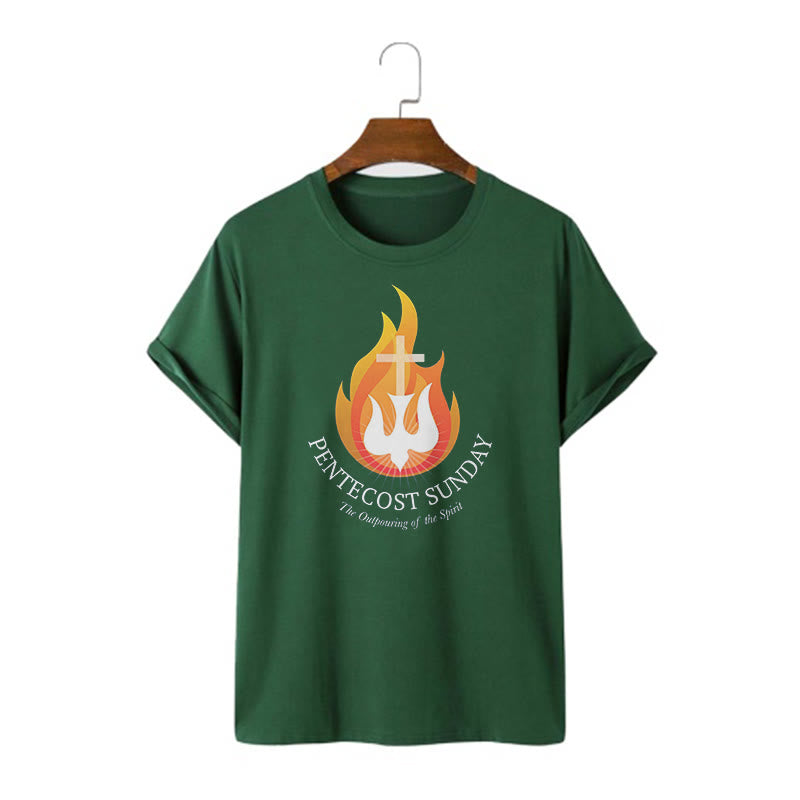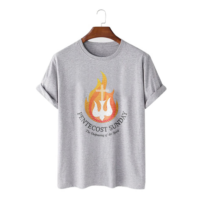Whether you're attending a church service, participating in a Pentecost celebration, or simply going about your daily activities, this T-shirt is a versatile choice. It seamlessly transitions from spiritual gatherings to casual outings, allowing you to carry the message of Pentecost wherever you go. -
