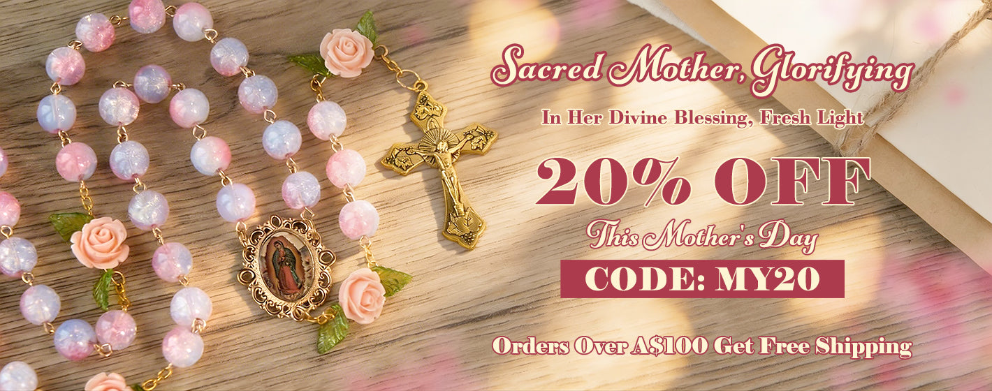 Christianartworkshop Vintage Wooden Cross and Deep Wine Red Rosary: 2026 New Year Blessing with Holy Family