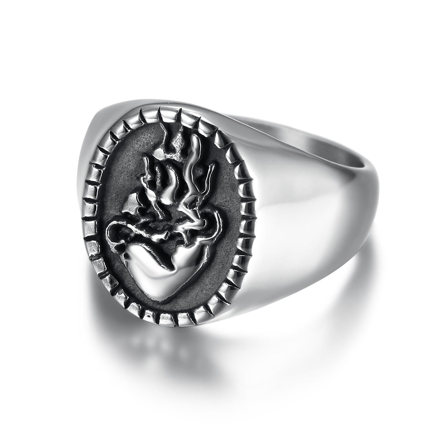 Classic Retro Style Jesus Sacred Heart Engraved Stainless Steel Faith Ring