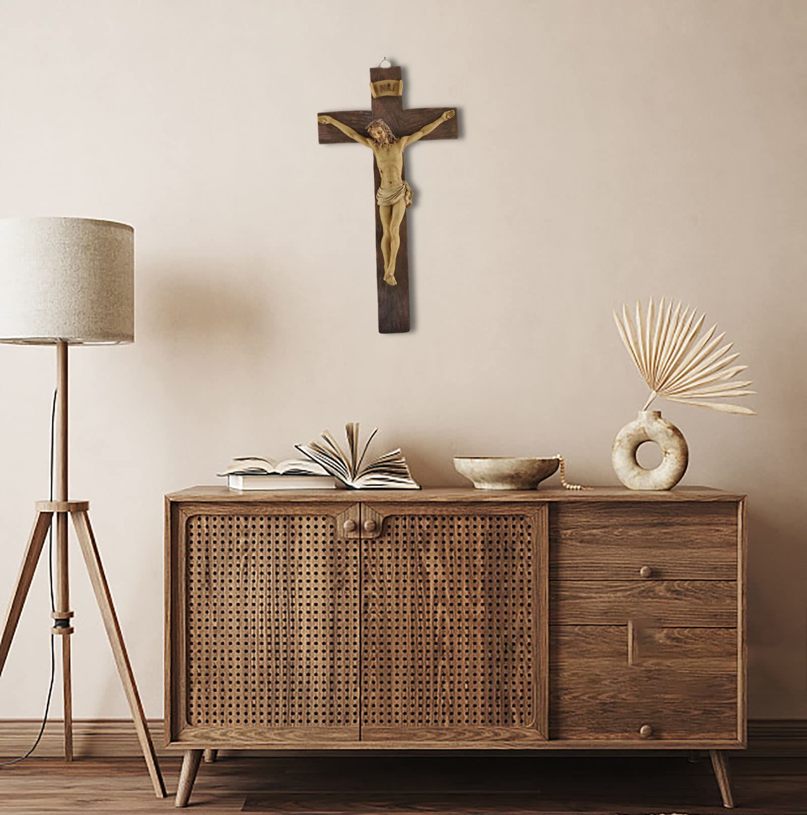 Skillfully crafted from rich, quality resin, the crucifix boasts natural textures and a sturdy build, ensuring it remains a lasting and meaningful fixture in your home. -