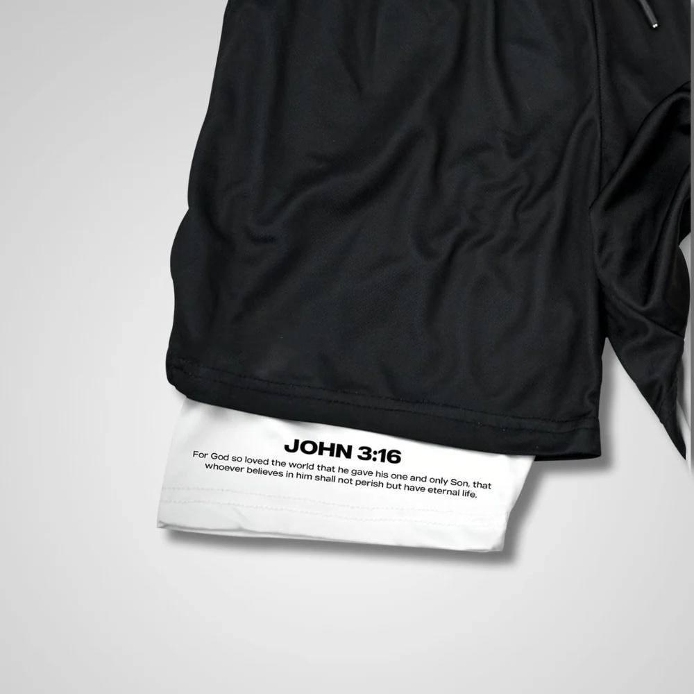 Look good and watch your motivation grow in these limited-edition Christian performance shorts featuring the John 3:16 bible verse: