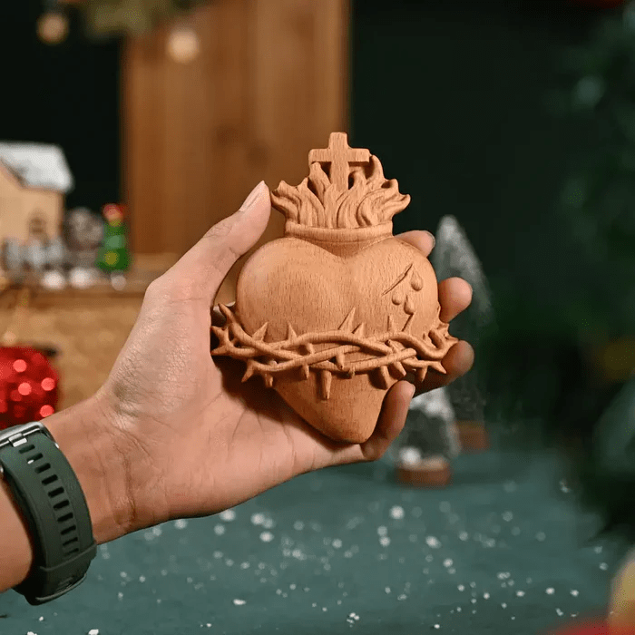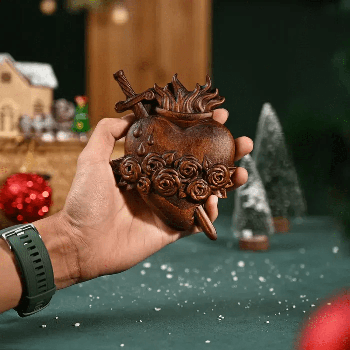 Unique Carved Christian Sacred Heart Desktop Ornaments