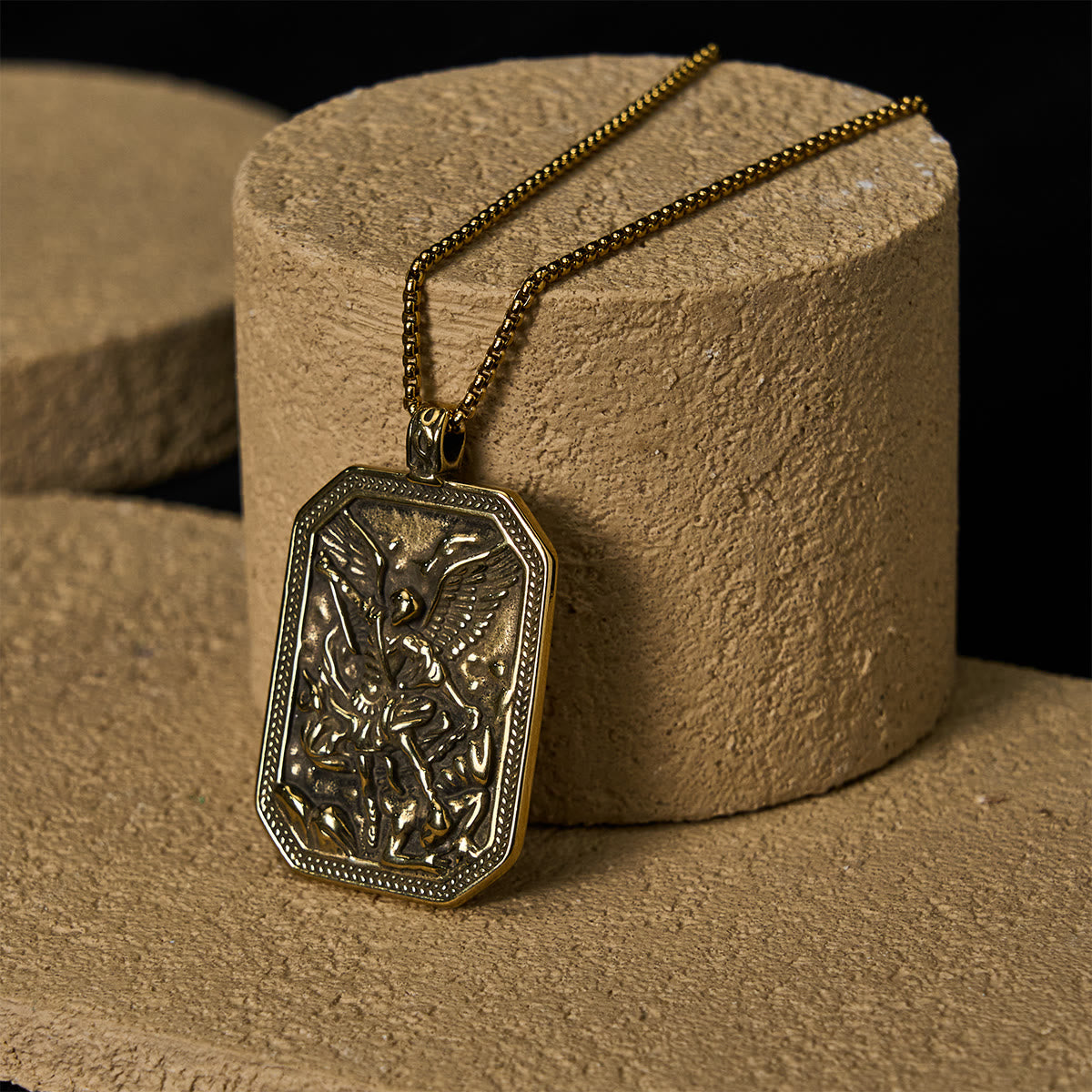 Wear the warrior of heaven as a shield against temptation and fear. His image calls you to courage, perseverance, and trust in God’s defending love. -