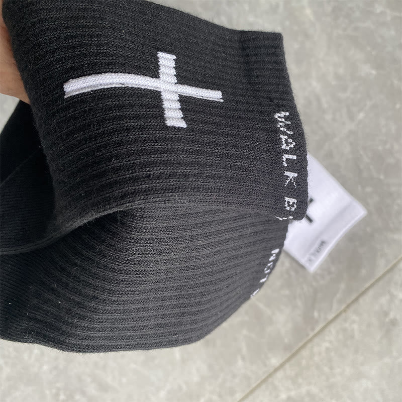 Available in both classic white and black options, these socks perfectly complement any outfit. They are suitable for all occasions, from casual outings to more formal events. Their simple yet powerful cross design stands as a symbol of your journey in faith.