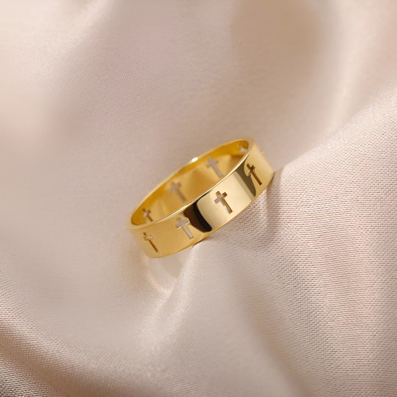 - Intricate Cross Patterns: The band features delicately etched small crosses, symbolizing spiritual strength and commitment, adding a touch of elegance to your everyday wear.