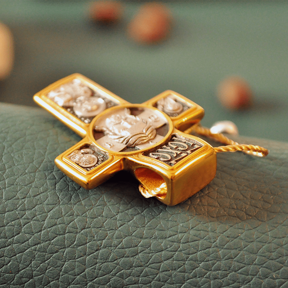 This elegant cross pendant is more than just an accessory; it embodies deep religious significance and cultural heritage. Each side of the medal offers a visual and spiritual connection to one's faith, making it a cherished piece for personal devotion. -