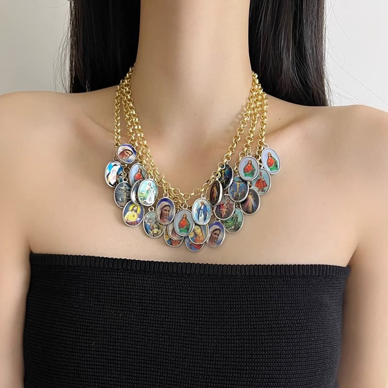 Christianartworkshop Vintage Portrait Church Layered Pendant Necklace