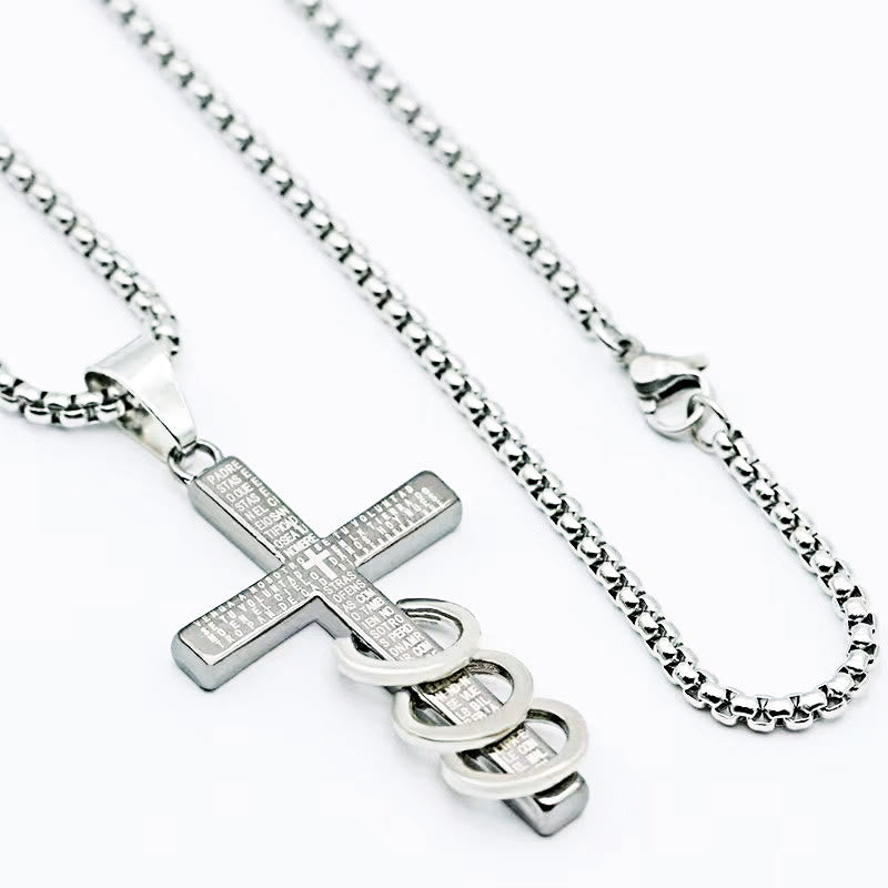 Minimalist Style Bible Verse Cross Pendant Titanium Necklace
