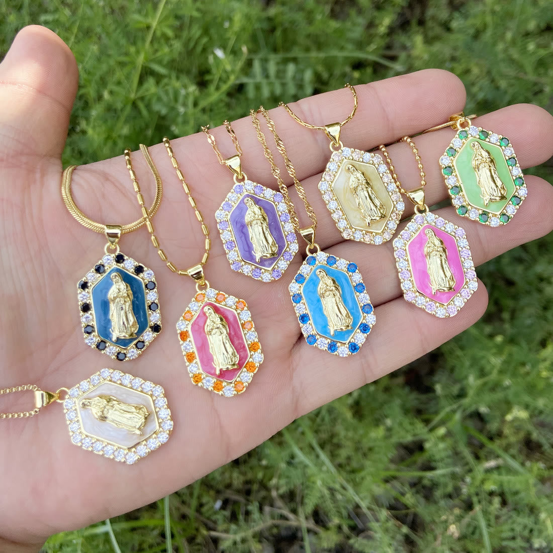 Christianartworkshop Exquisite Blessed Mary Micro-inlaid Zircon Necklace