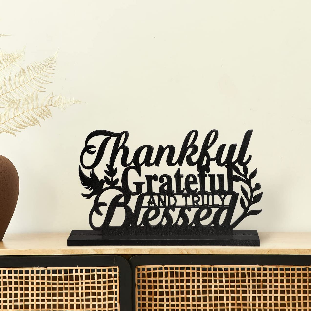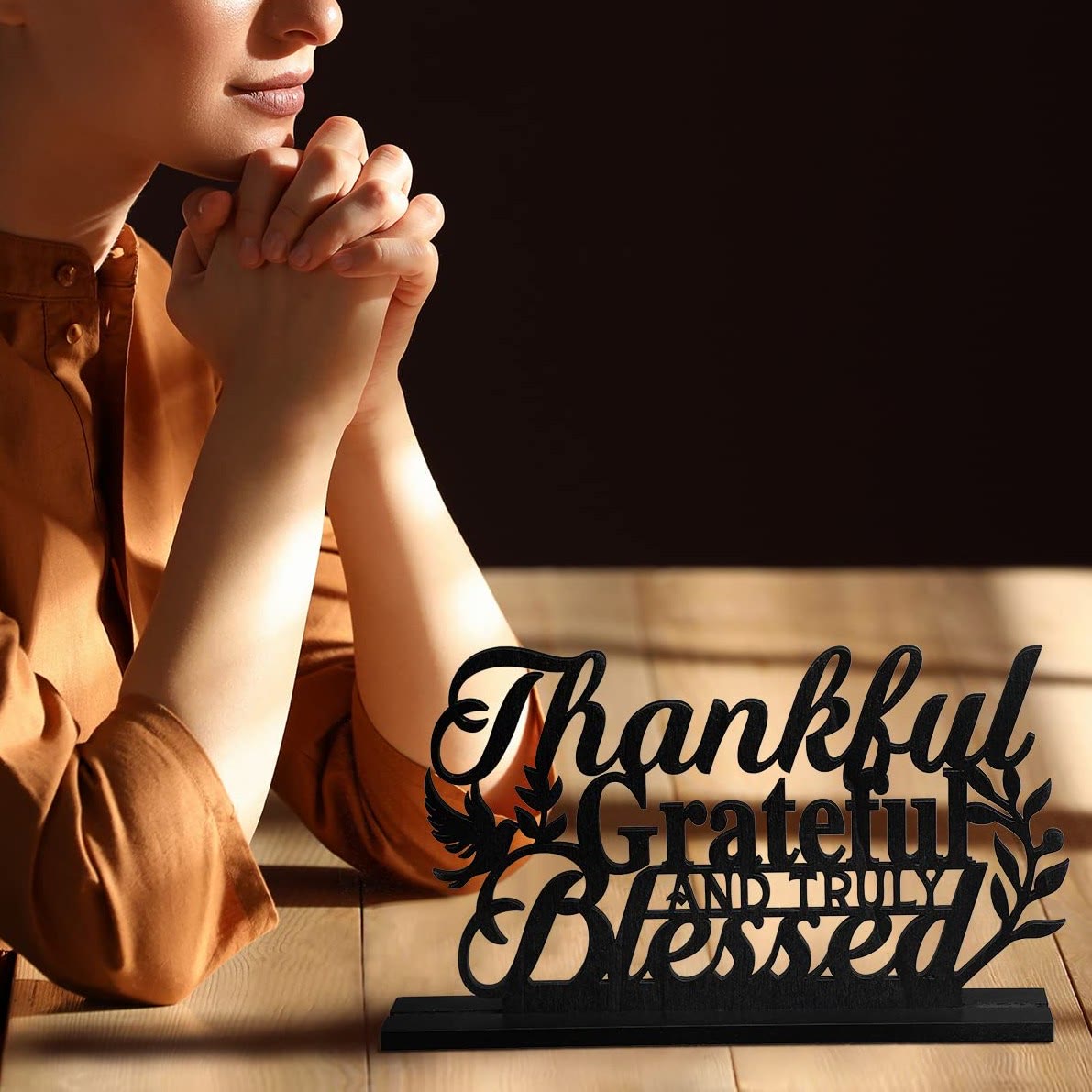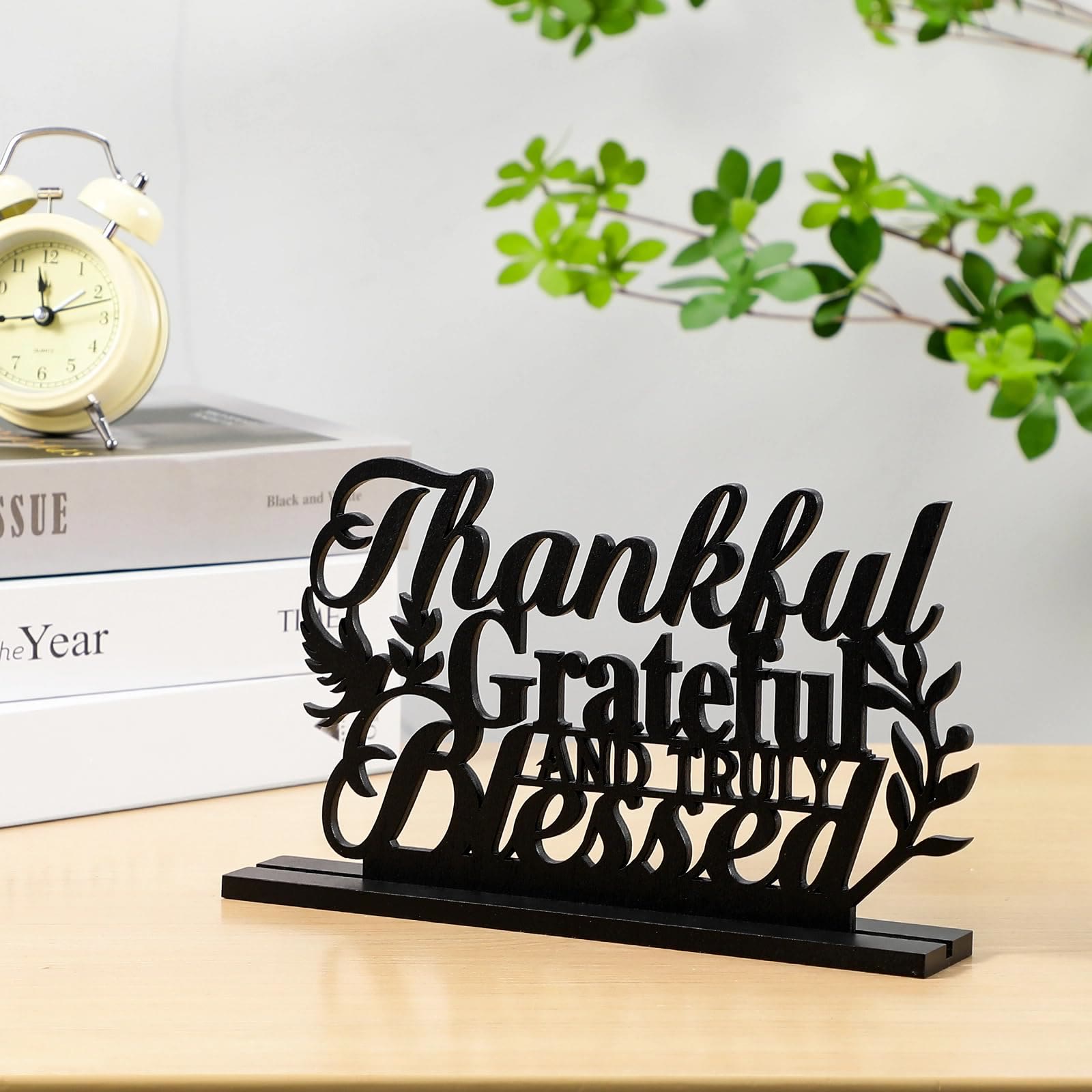 Meticulously crafted from wood, the art showcases intricate lettering, a cross, and dove accents, creating a devotional ambiance for your tabletop. -