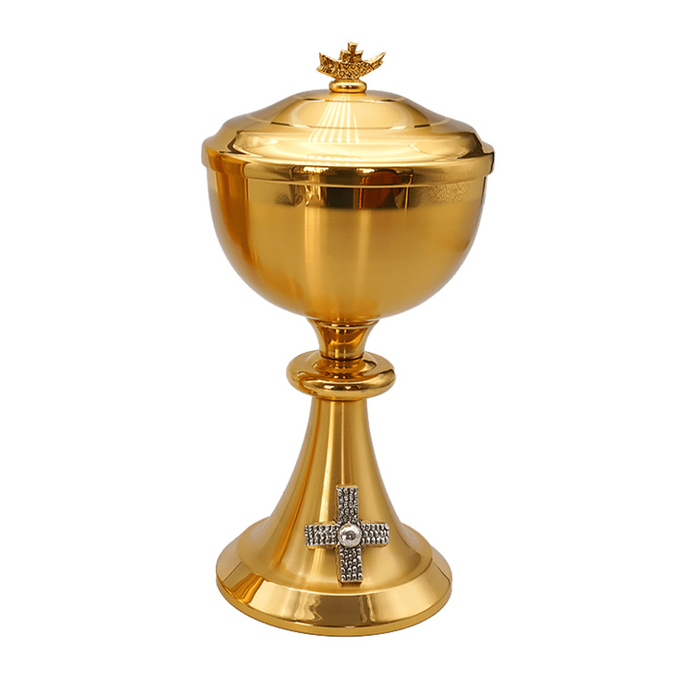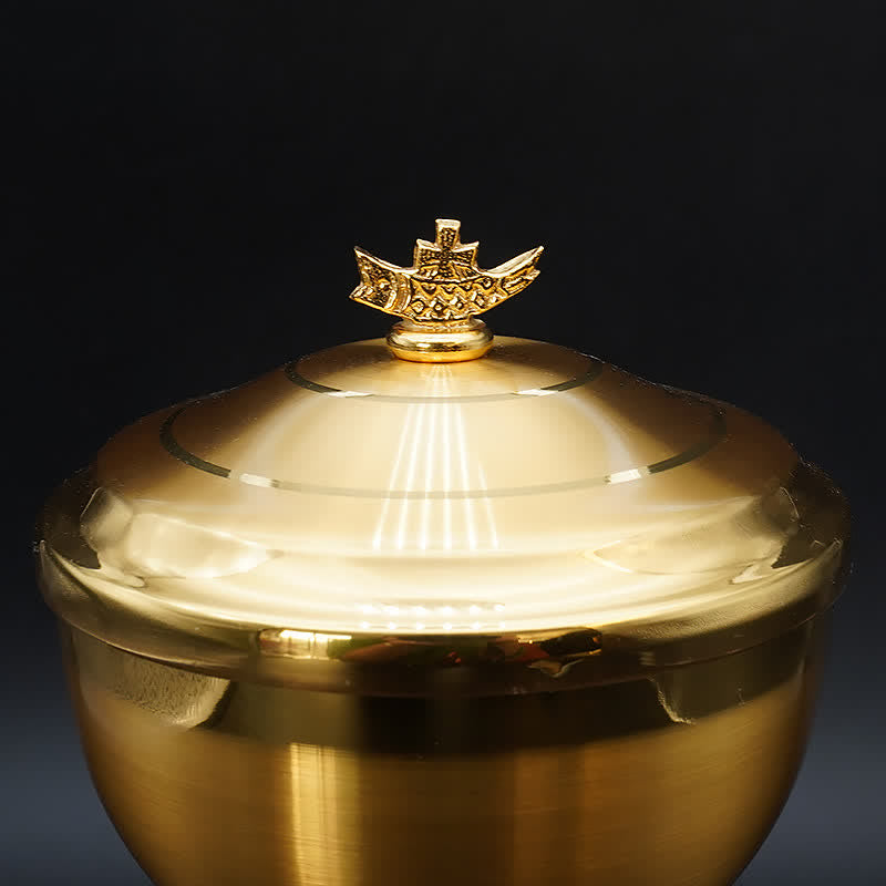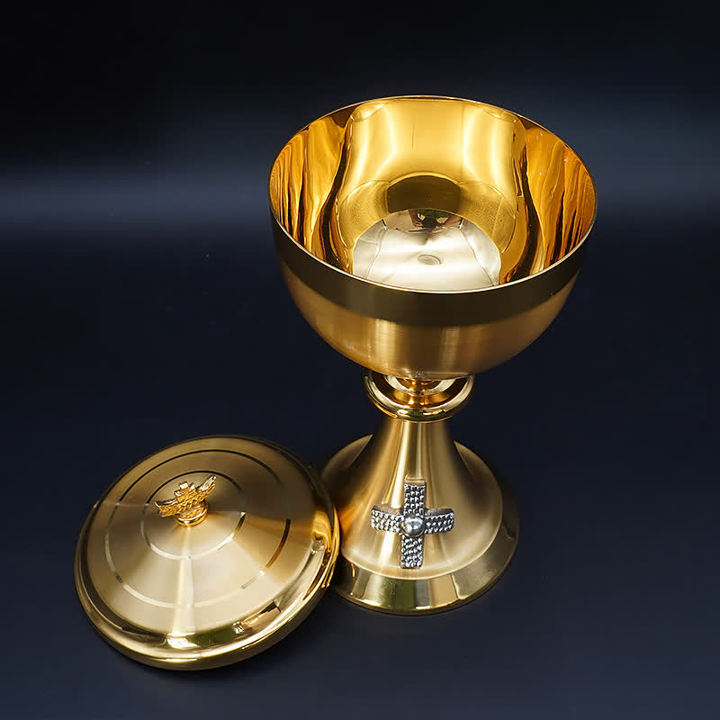 Exquisite Gold-Tone Cross-Adorned Chalice and Pyx - Divine Vessels for Sacred Communion