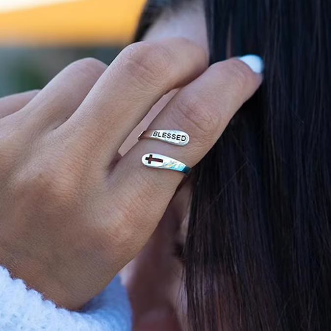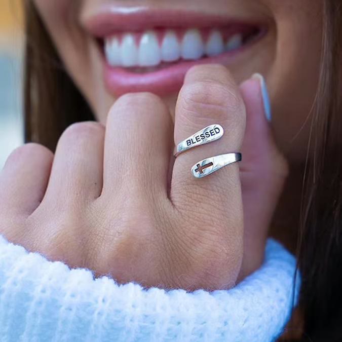 Adjustable “BLESSED” & Cross Ring: Minimalist - Style Spiritual Accessory