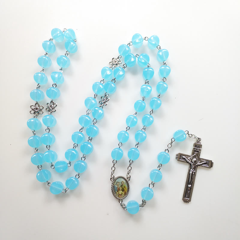 Holy Family & Crucifix of 10mm Round Blue Acrylic Alloy Chain Rosary