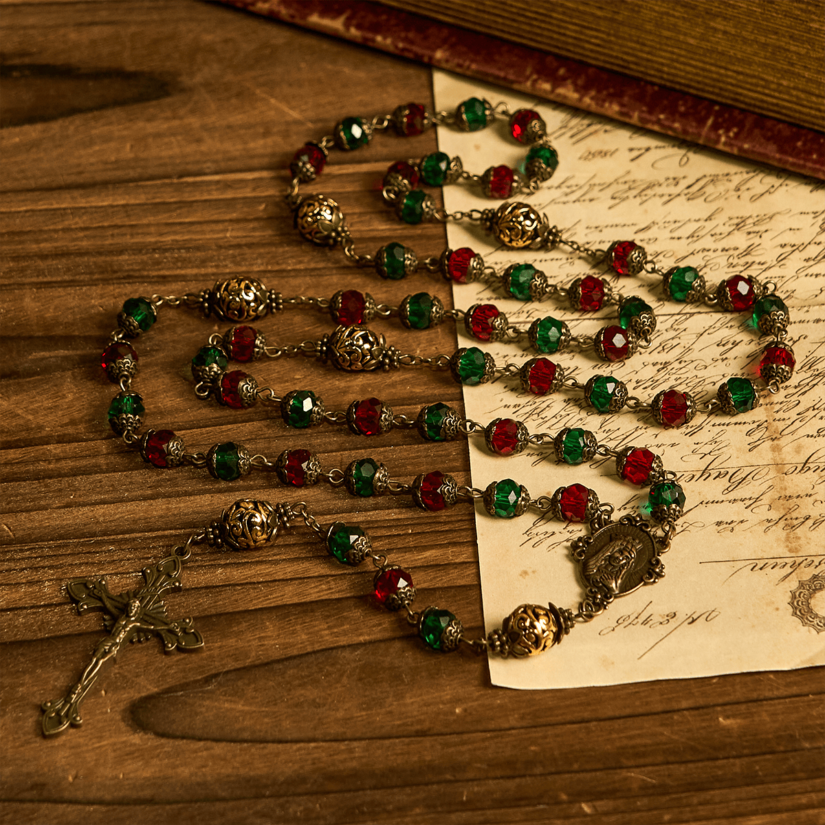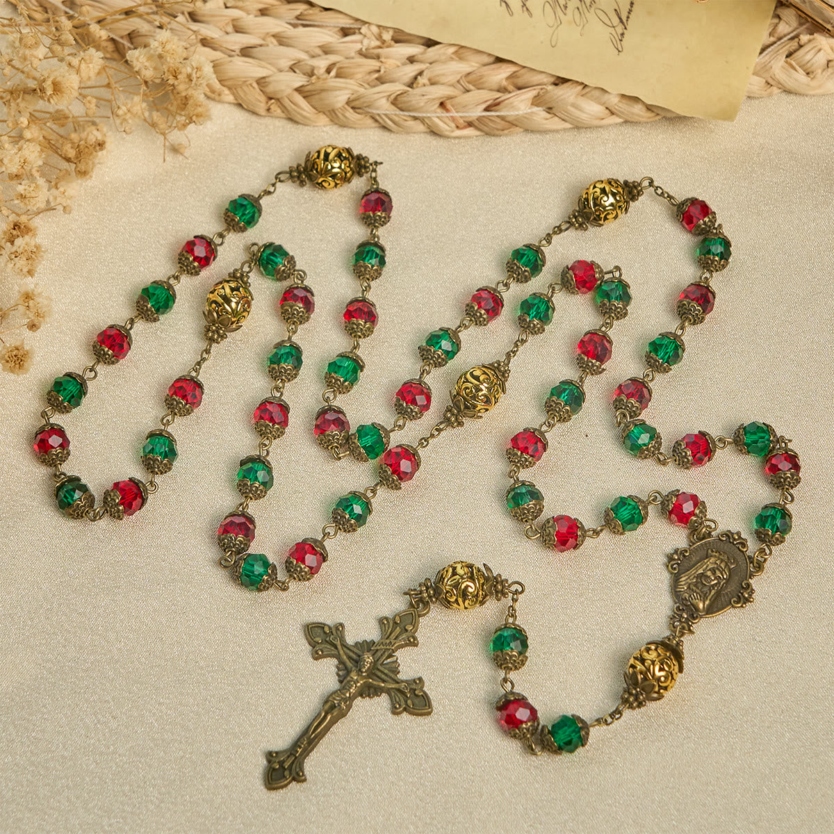 The deep red beads remind us of Christ’s precious blood and sacrifice, while the green beads symbolize life, renewal, and everlasting hope. Together, they create a powerful testimony of faith and festive reverence. -