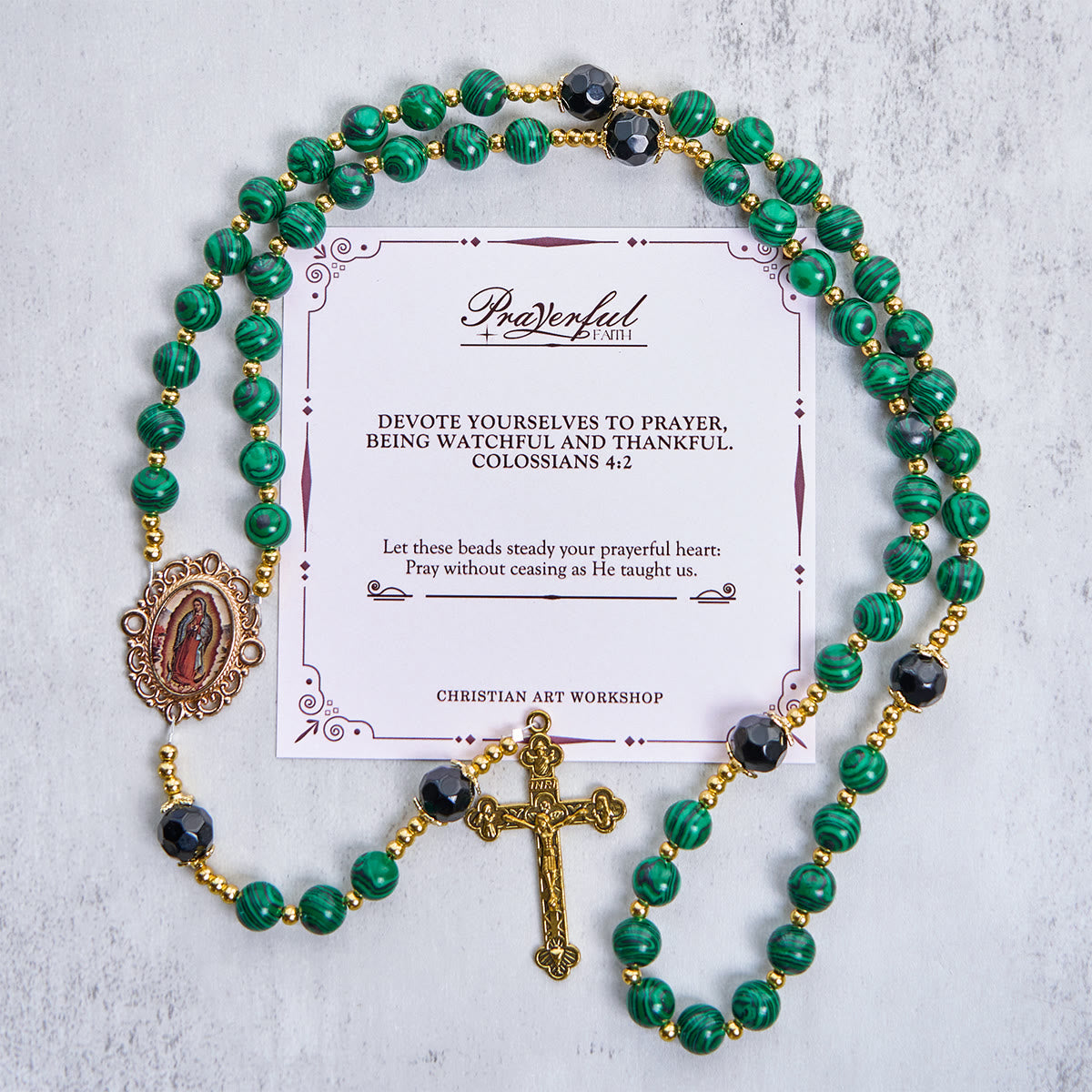 Smooth Green Malachite Green Rosary with Crucifix & Holy Miraculous Medal