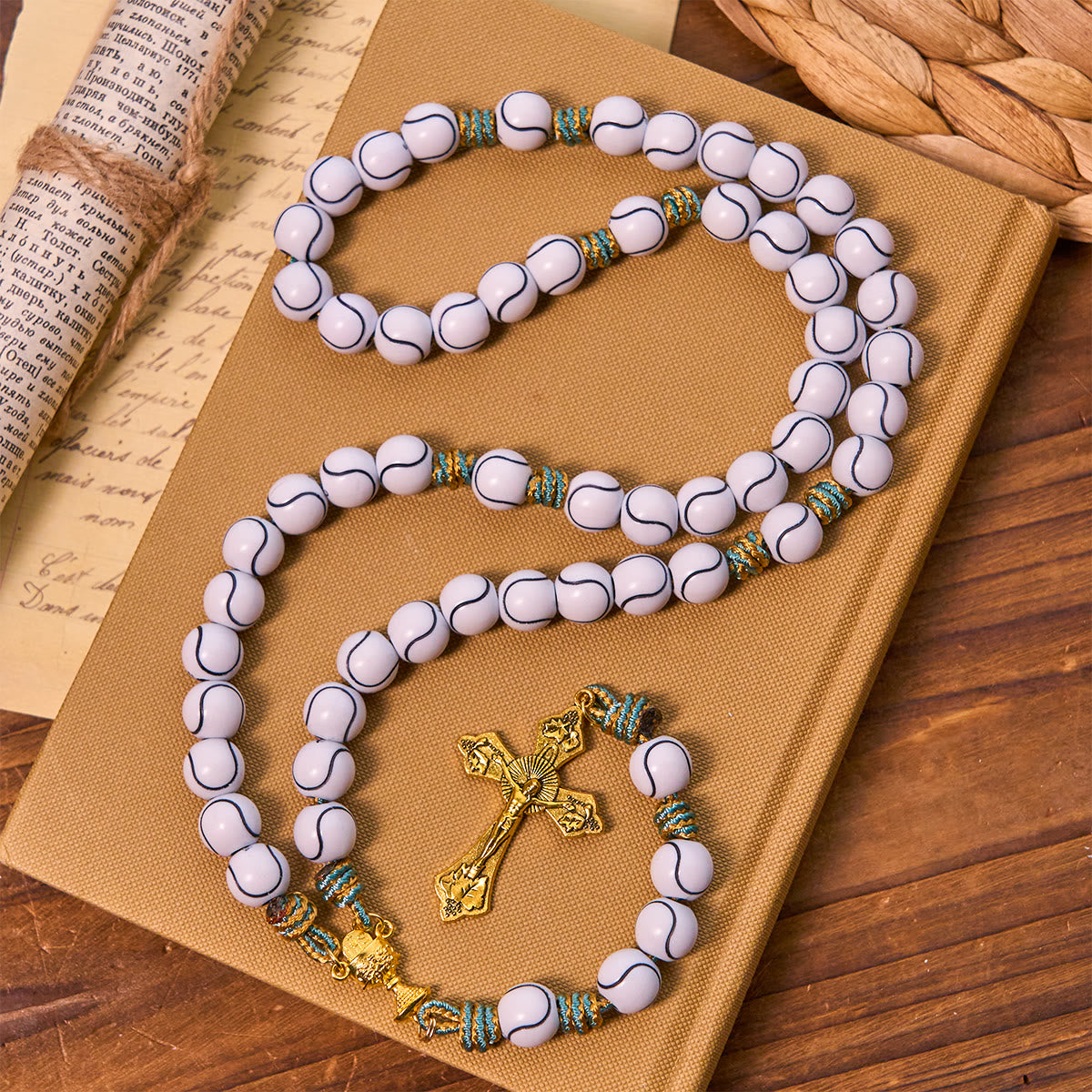 Combining timeless religious symbols with sport - inspired detailing, it serves as a cherished prayer tool, a meaningful gift for those who love both faith and sports.