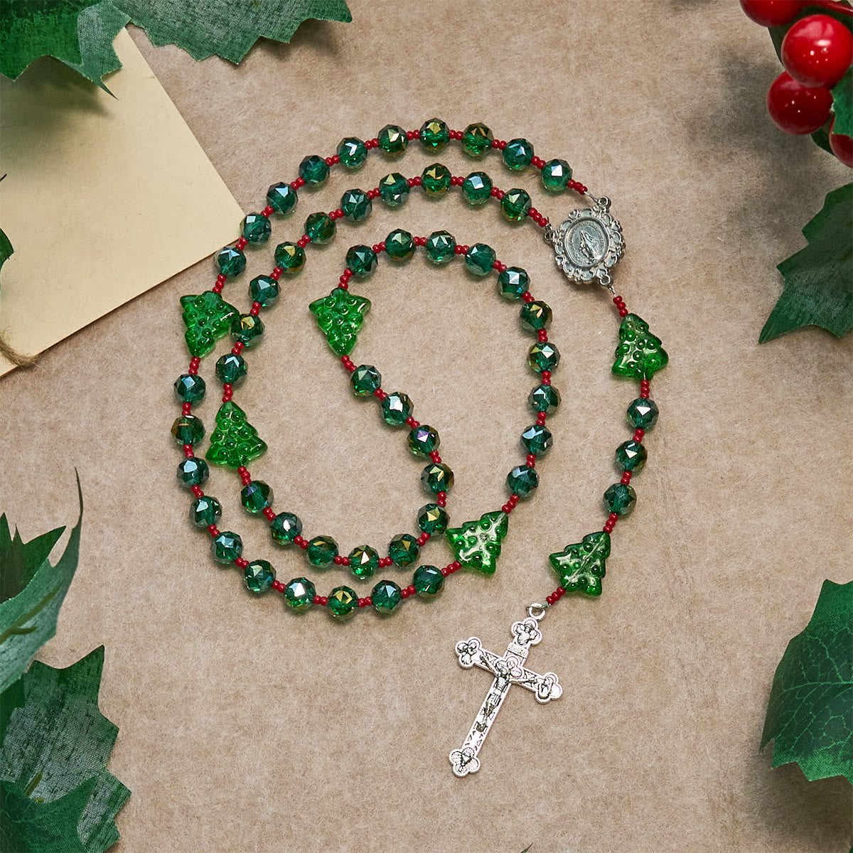 Christianartworkshop Christmas Gift: Joyful Green Tree of Hope Christmas Rosary: Celebrate Christ's Birth - Gift of Faith Born for You - image 0