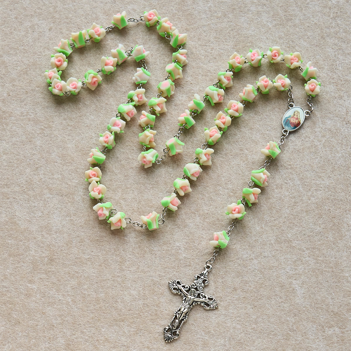 Each handcrafted soft clay rose bead reflects the light of devotion, symbolizing love and faith blooming. Together, they create a journey of prayer that nurtures the soul, reminding believers that every bead is a step toward divine closeness. -