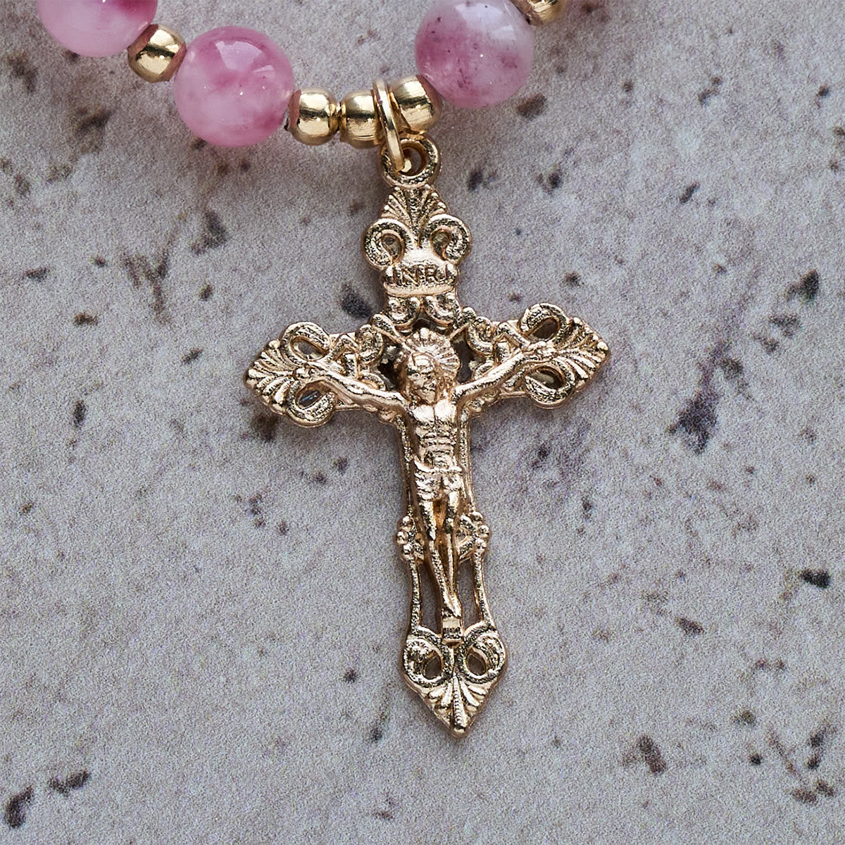 Rose Red Agate Bead Rosary & Bracelet: Devotion & Heavenly Elegance