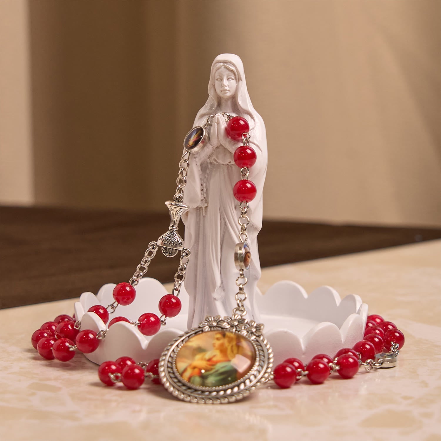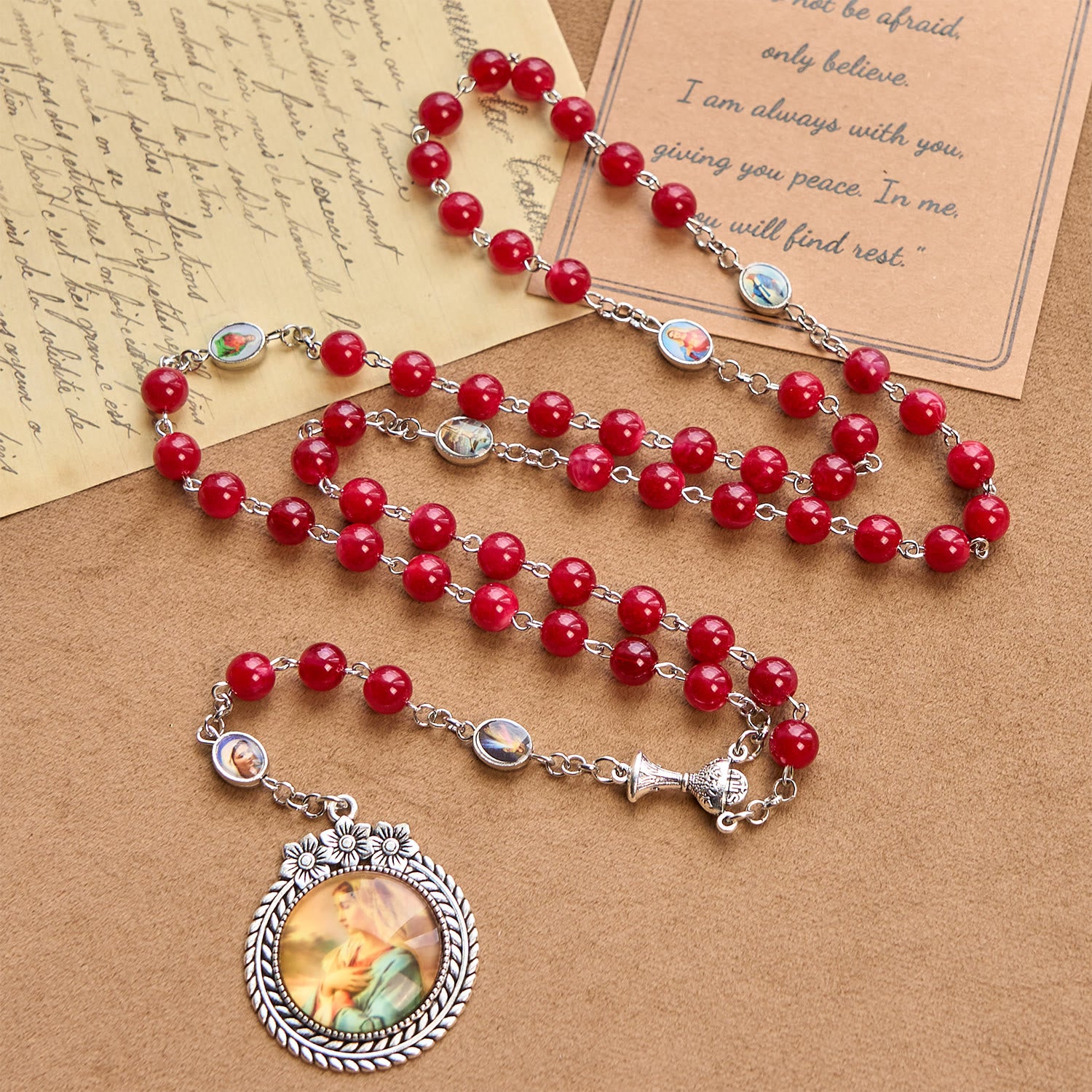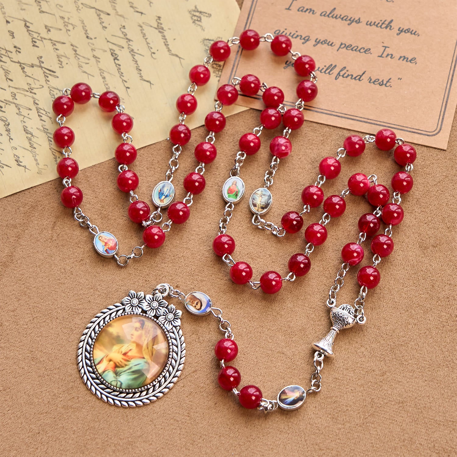 Convey heartfelt spiritual solace. This rosary is a tangible embrace of Our Lady’s gentle love and the Holy Grail’s sacred promise—a cherished keepsake of divine companionship.