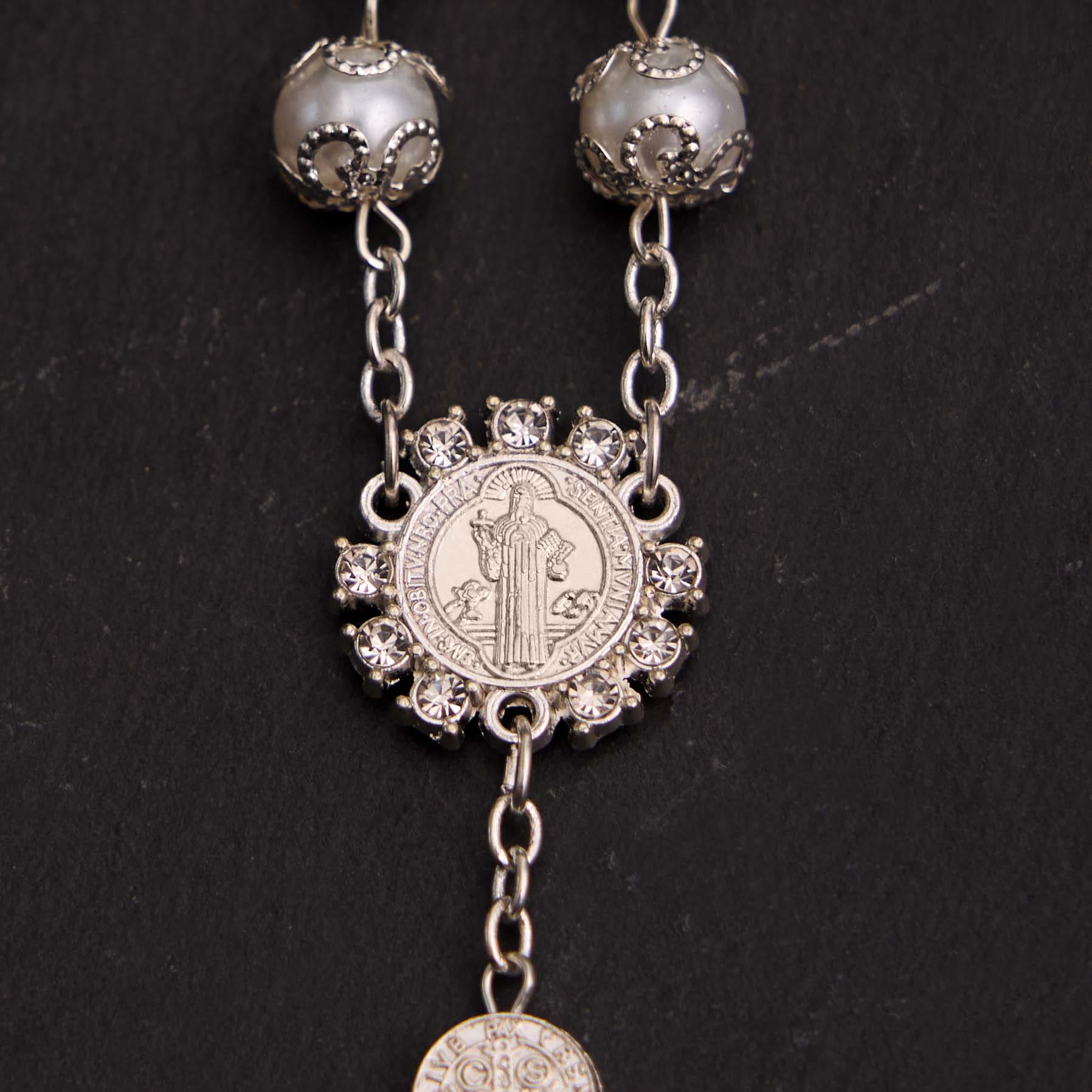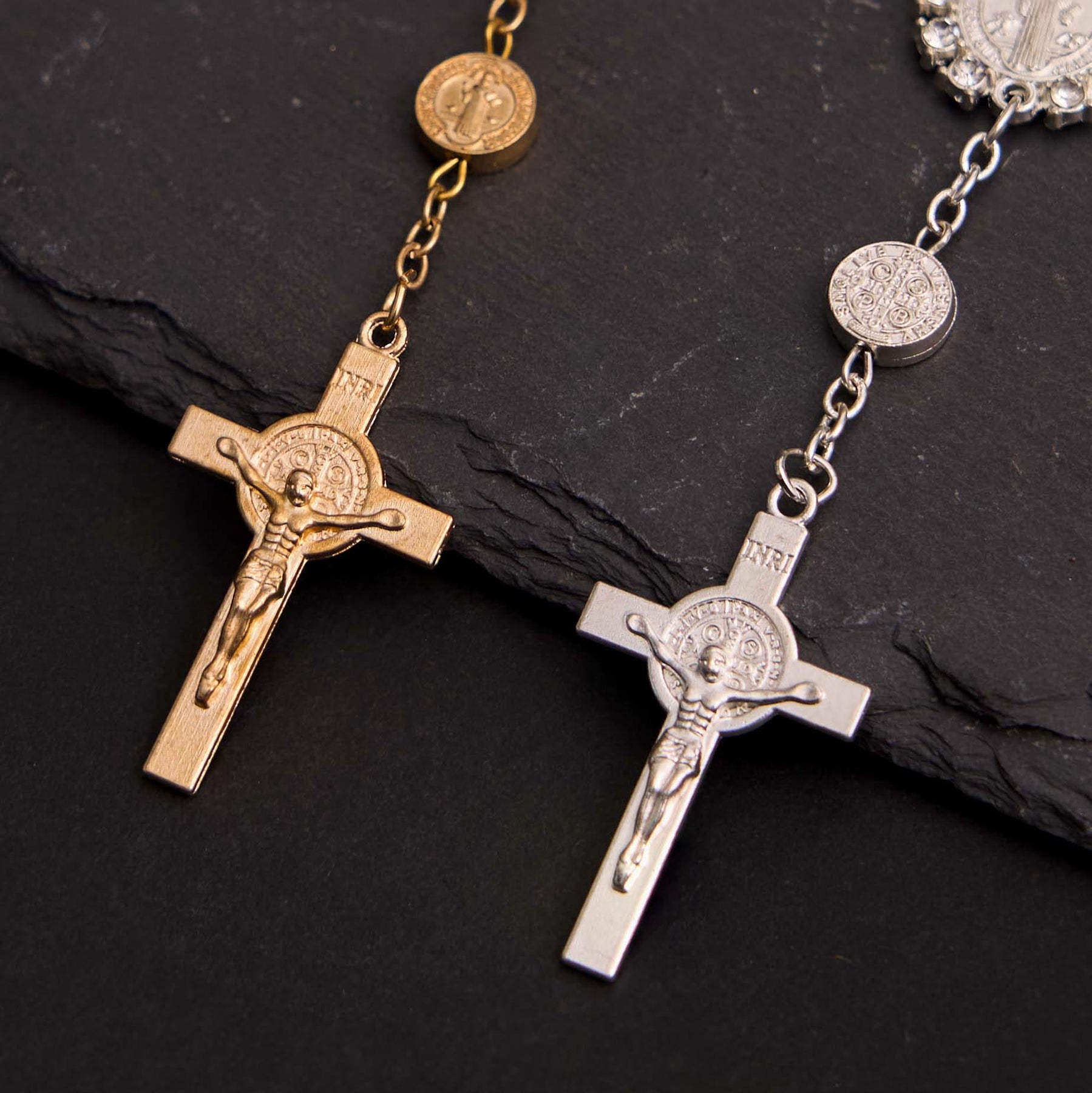 Christian Glass Beads St. Benedict & Jesus Cross Bracelet Rosary - Silver - image 8