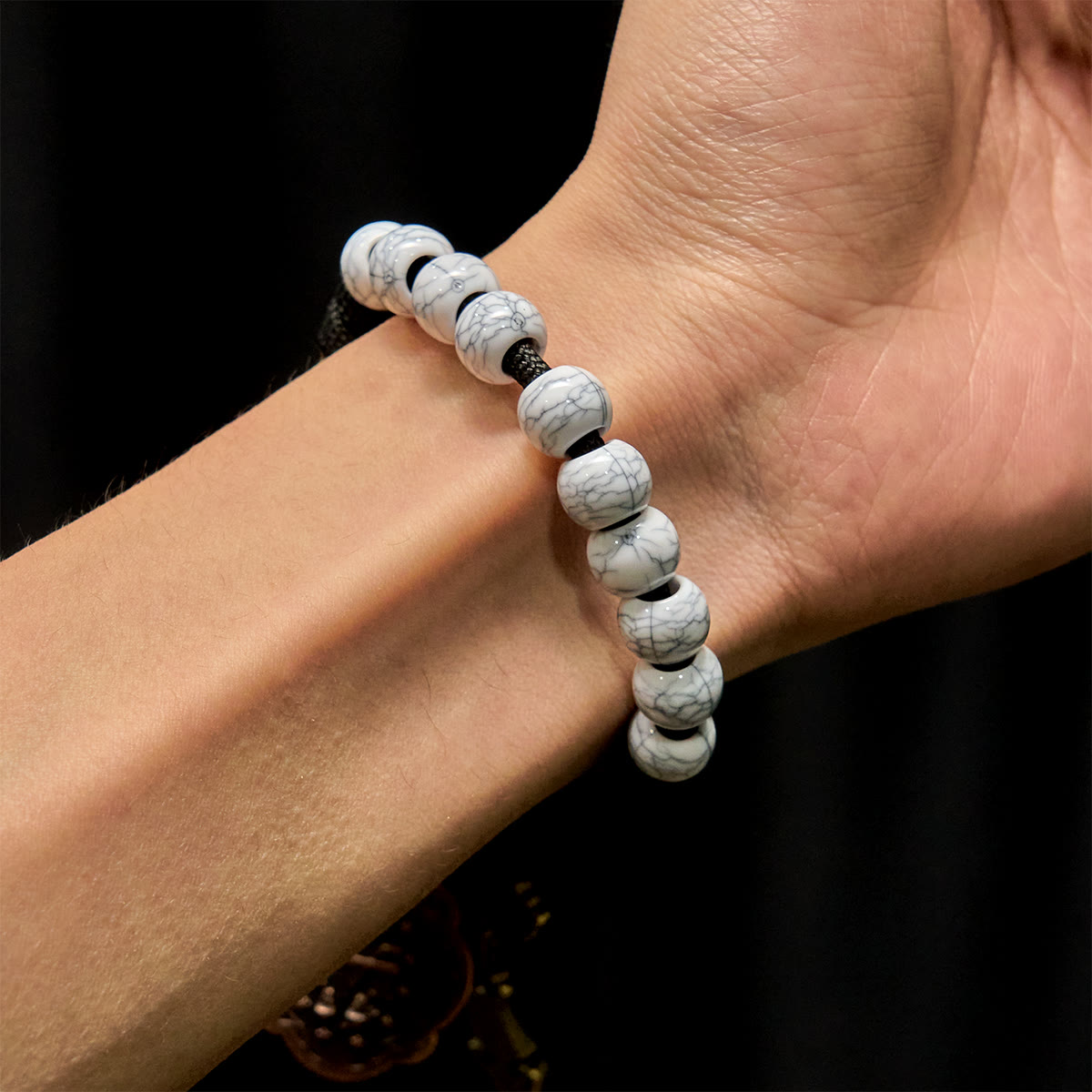 Each bead is cool, textured, and soothing to the touch, guiding prayer with a gentle cadence. The knotted cord construction adds durability, making it a trusted companion for commute, travel, or moments of quiet reflection. -