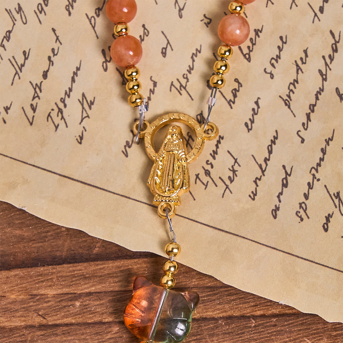 This heartwarming rosary brings together the comforting presence of the orange tabby cat and the sacred power of the Miraculous Medal, reminding us that the Lord’s love extends to every soul He has created—human and animal alike. -