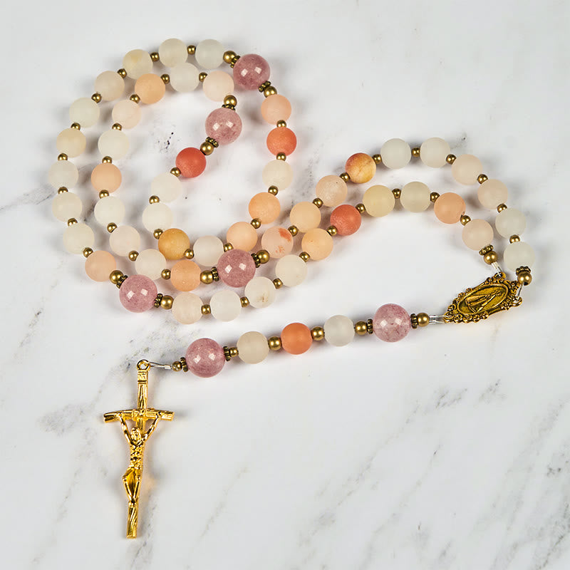 - Handcrafted Rosary with Pink Aventurine and Strawberry Quartz: A Symbol of Divine Beauty