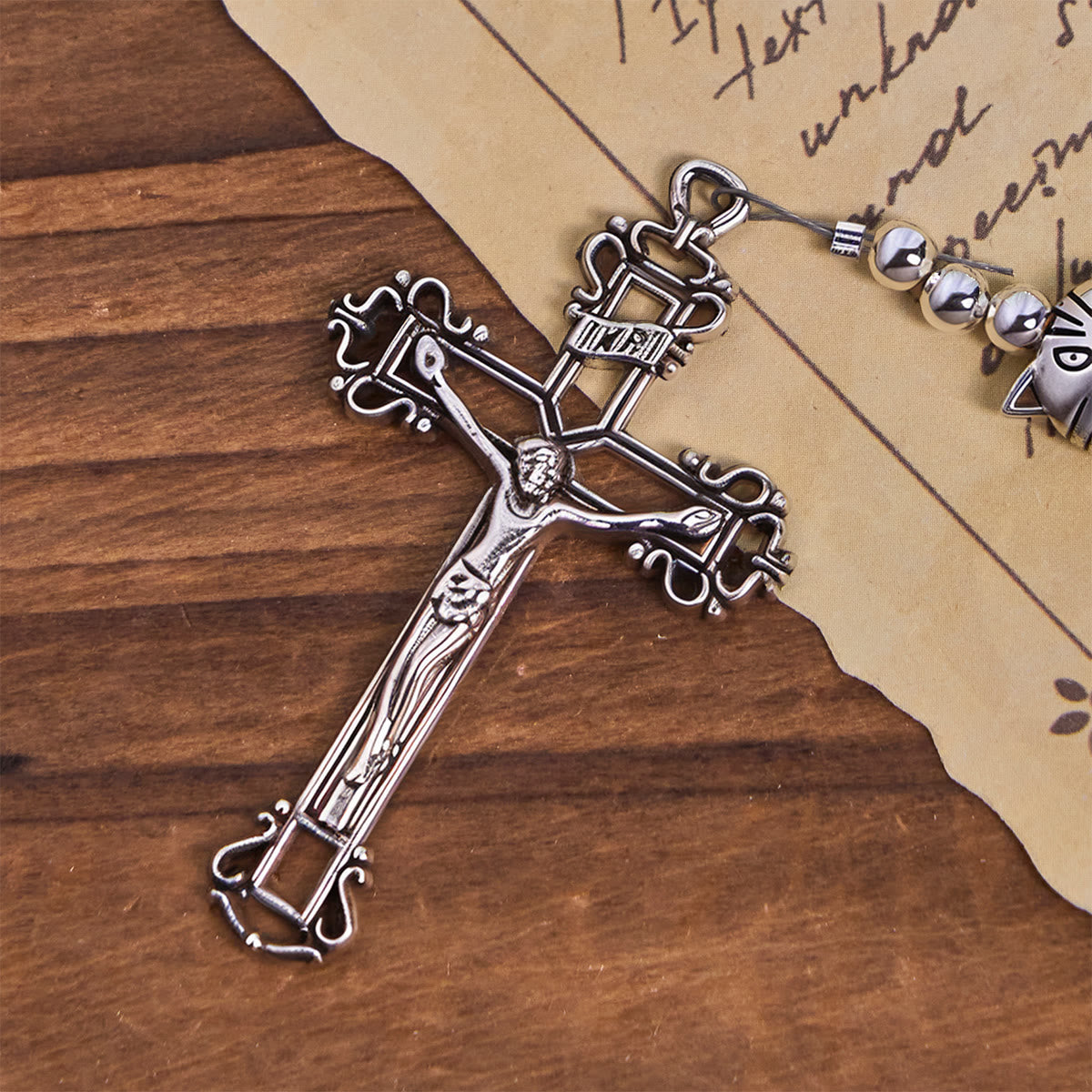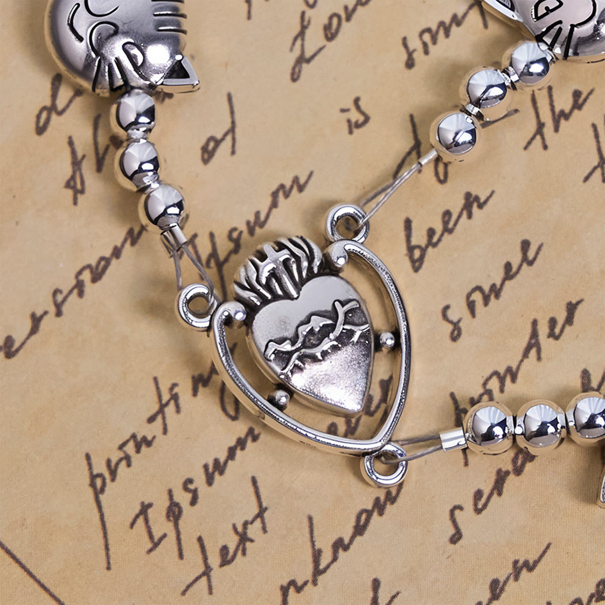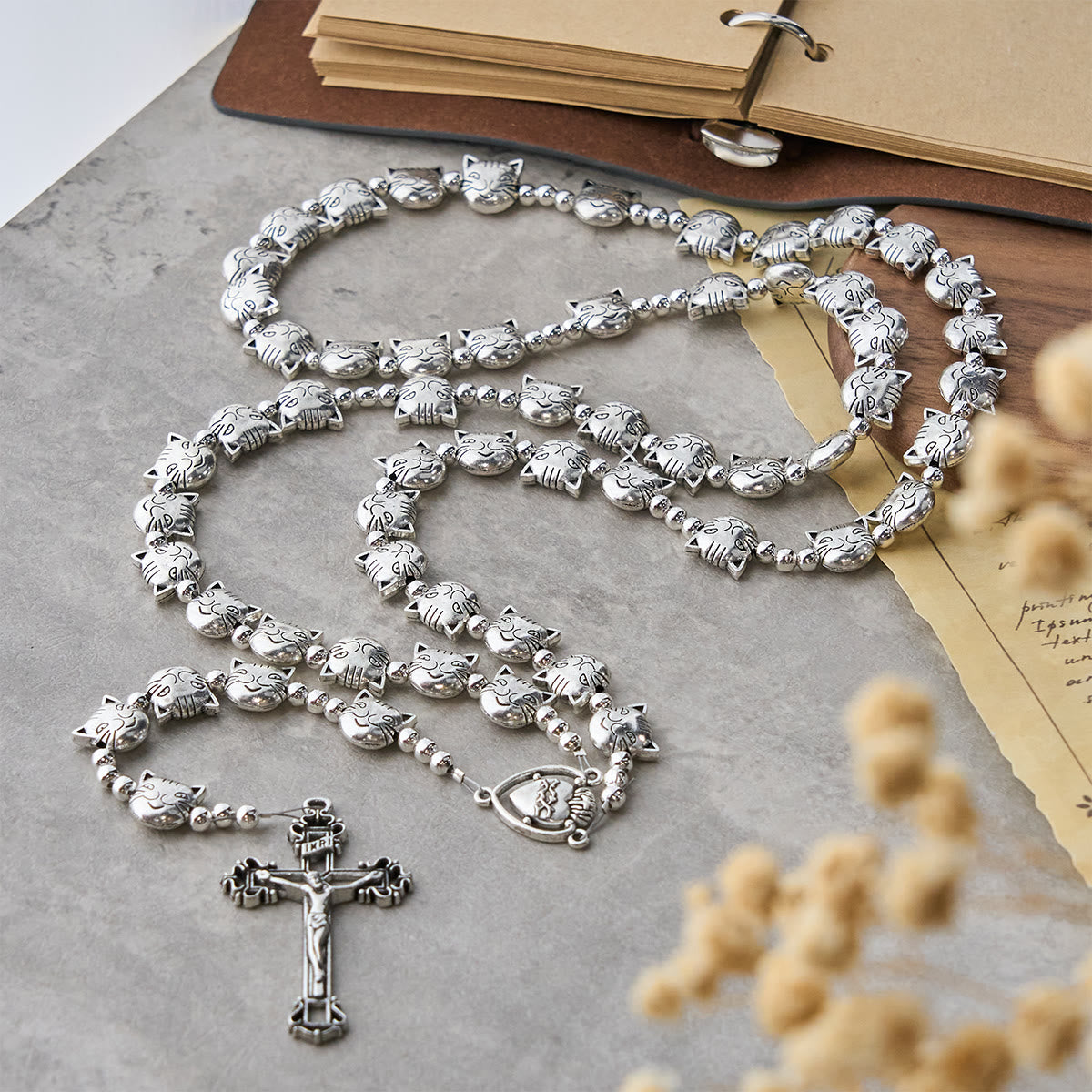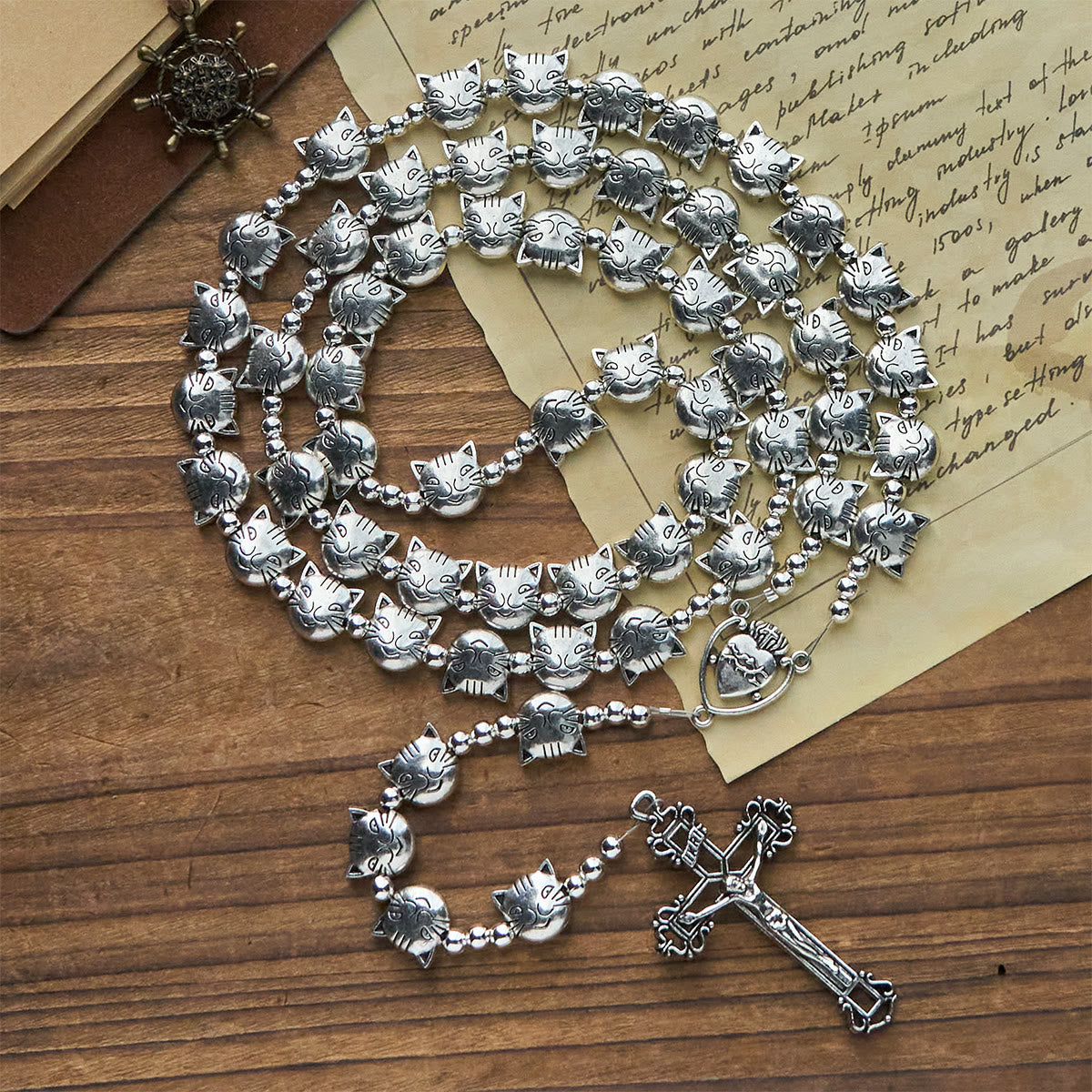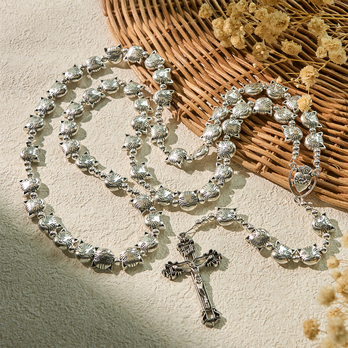 This distinctive rosary brings together the tender image of the Sacred Heart of Jesus with a delightful series of cat face beads, creating a heartfelt reminder that the Lord’s love and mercy extend to all of His creation—every person, every creature, every life. -