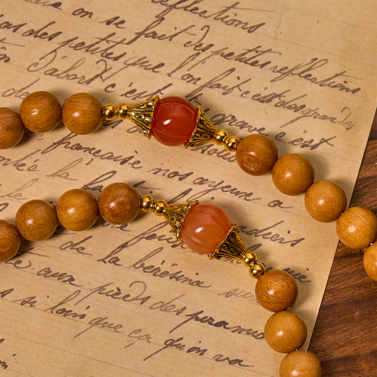 Thanksgiving Devotion Sandalwood Rosary with Golden Grace Pumpkin Gemstones & Holy Grail