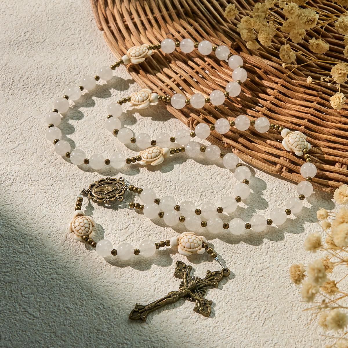 Let your prayers flow with peace and purpose through this serene rosary, where the gentle form of the turtle meets the sacred beauty of the Miraculous Medal. -