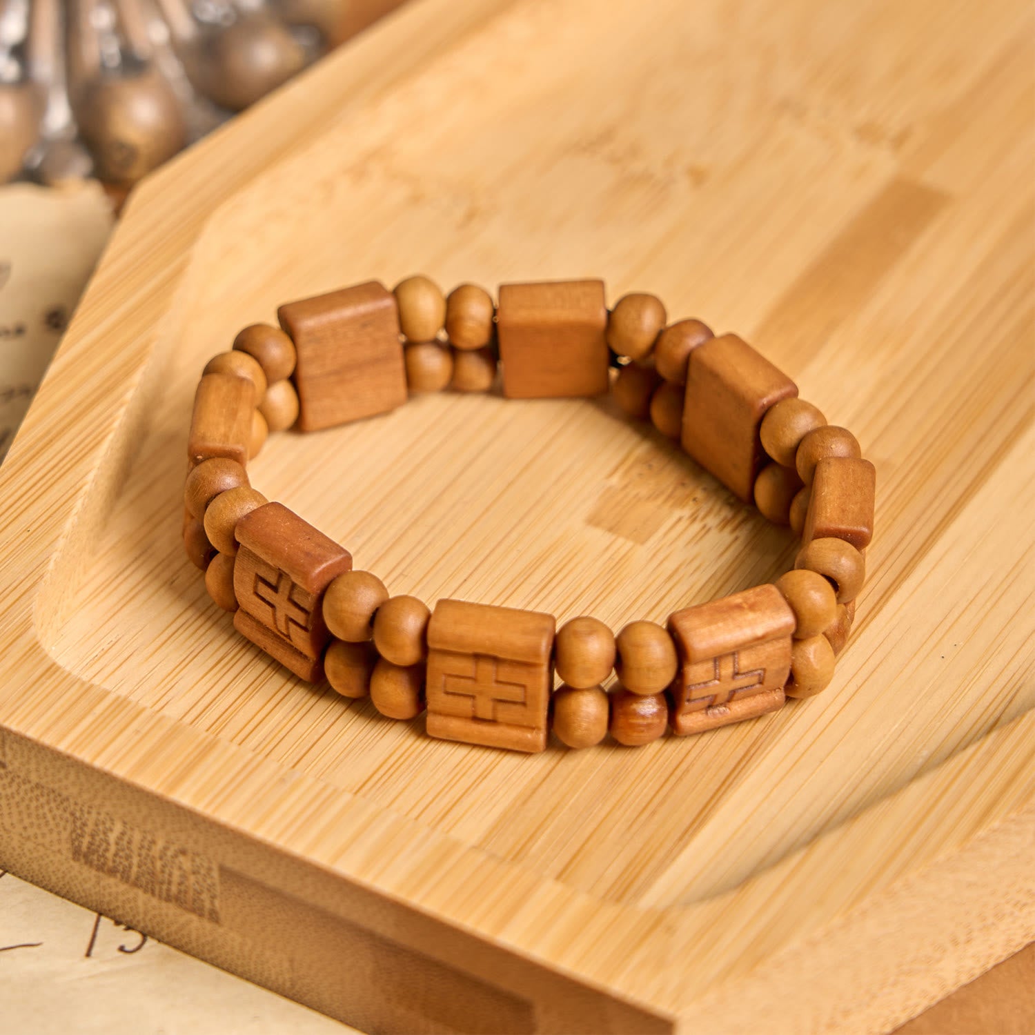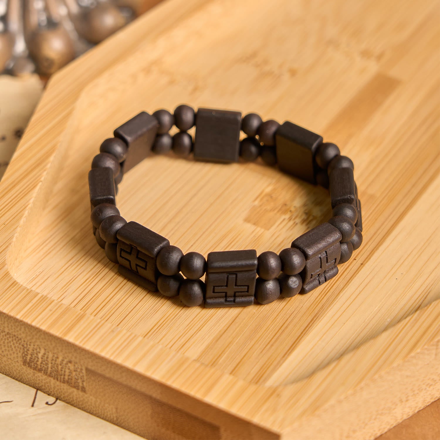 Whether it is a solemn religious ceremony or a daily leisure time, this bracelet can be easily adapted. Its simple yet solemn style can be matched with all kinds of clothing, adding a unique temperament to the overall shape.