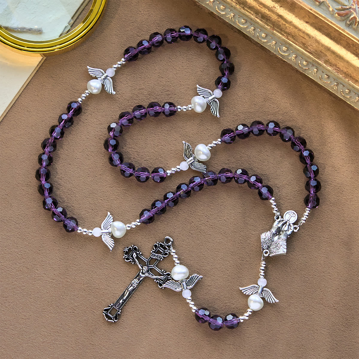 Christianartworkshop Angel-Wreathed Purple Rosary: Let Angels Weave Grace Into Your Prayers