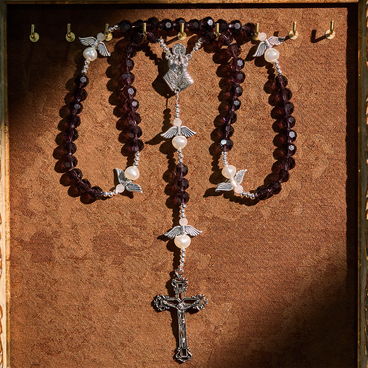 Let this rosary be your prayer companion, wrapped in celestial care. As you trace each purple bead, the angels’ form guides your thoughts: their wings mirror the gentle cover of God’s grace, turning routine prayers into moments of being held by heaven.