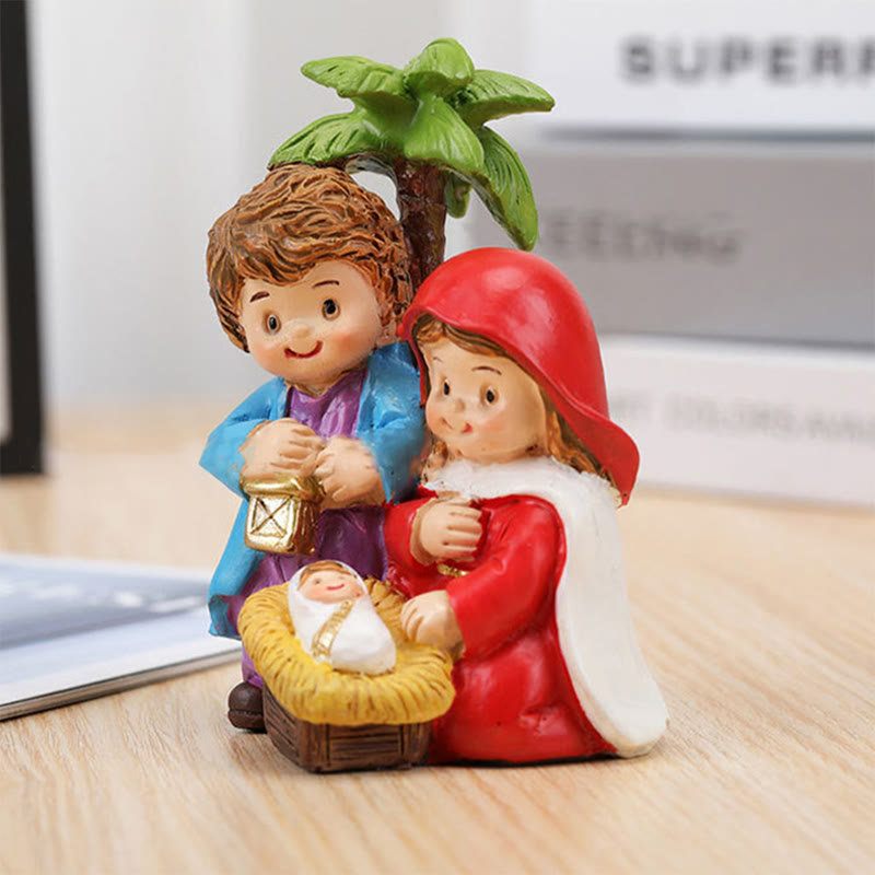Cartoon Style Sculpture of Nativity Scene Resin Stereoscopic Desktop Ornaments