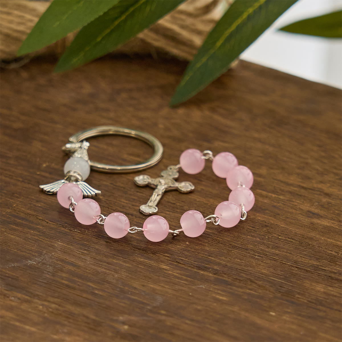 The Multifunctional Tri - Color Gem Keychain & Pocket Rosary, blessed with Angel Wing, merges faith and convenience. A portable token of angel - guided devotion, ready to accompany you. -