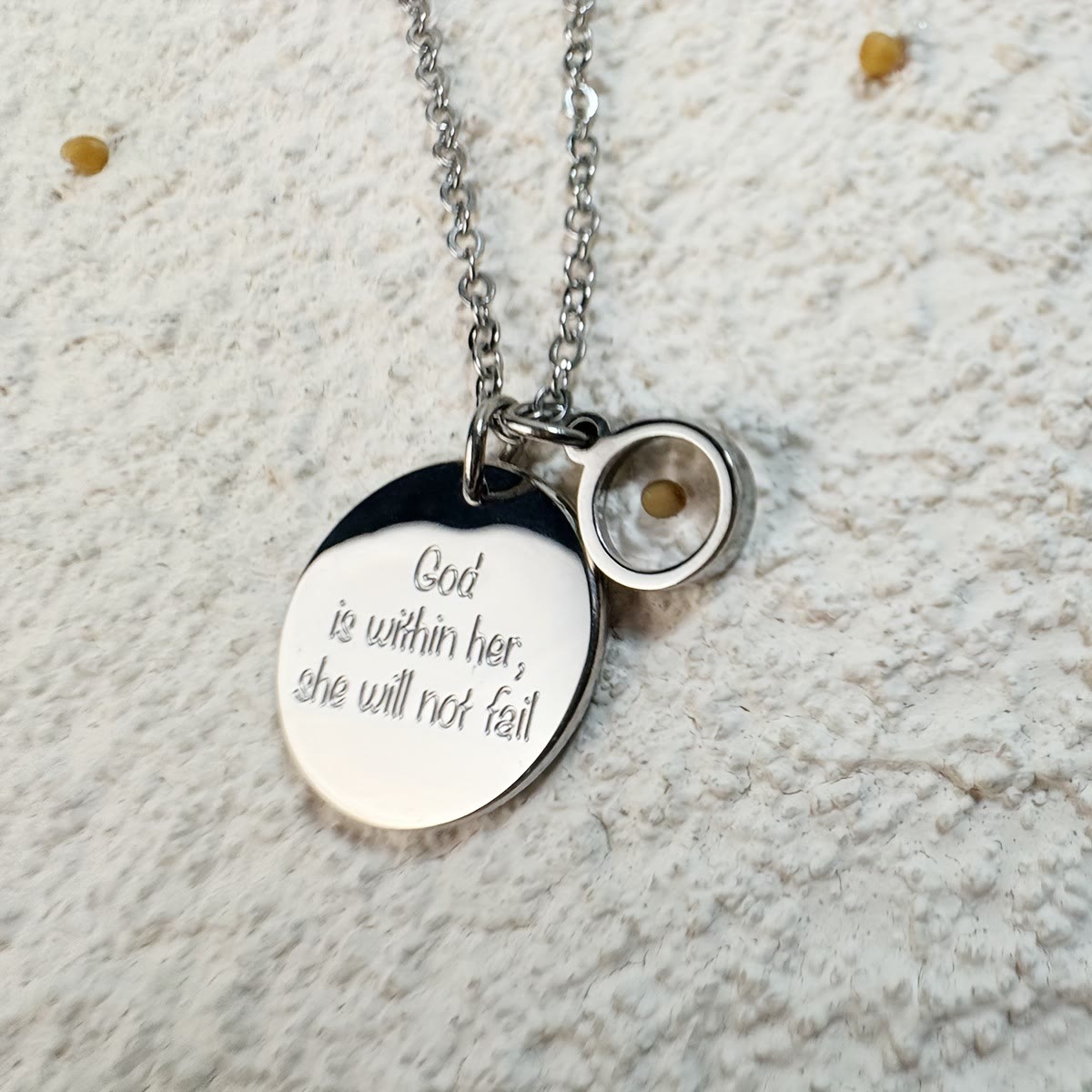 Featuring a scripture - engraved charm and a mustard seed - filled pendant, the necklace unites meticulous craft with profound spiritual meaning. The multi - tone metal options blend elegance with faith’s timeless message. -