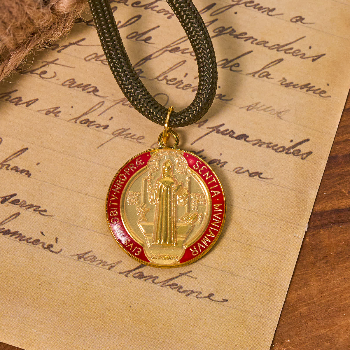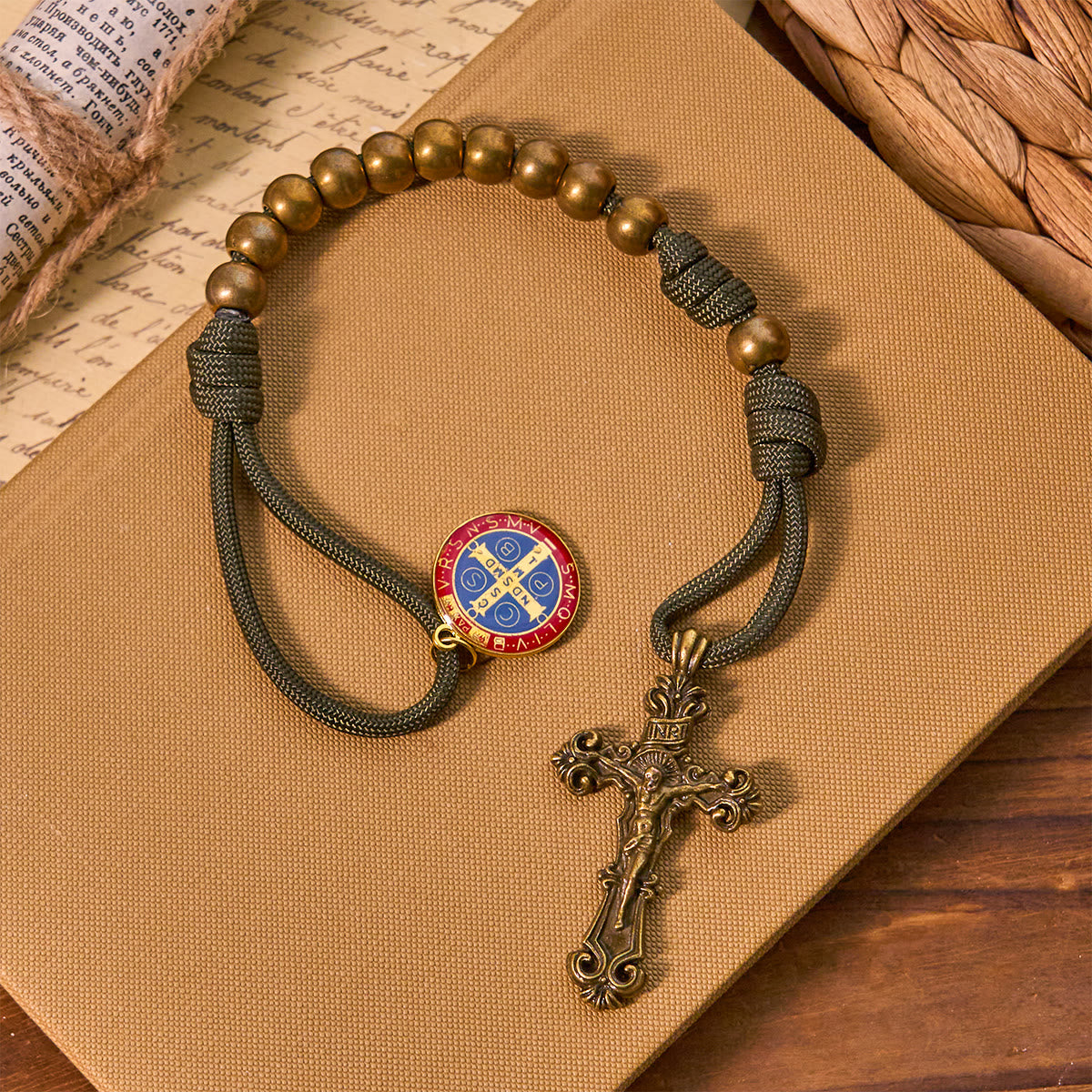 Crafted with bronze-tone beads and durable nylon cord, this rosary balances resilience and tradition. The red-and-blue St. Benedict Medal creates a sacred focal point of courage and holiness. -